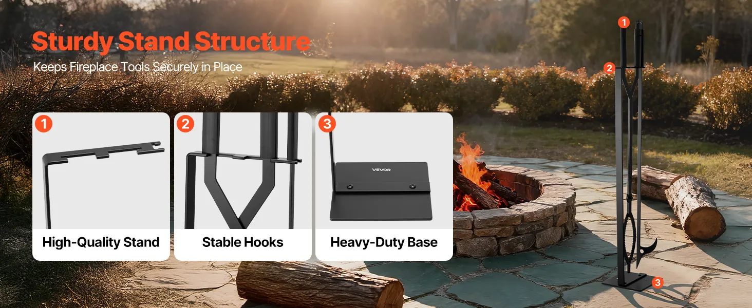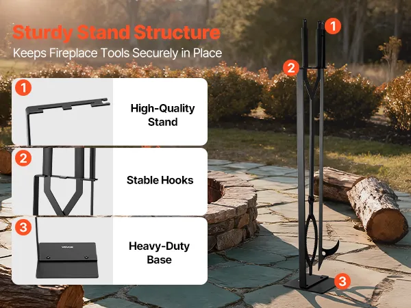 Built with a sturdy and quality stand, stable hooks, and a heavy-duty base, these fireplace tools keep each piece securely in place. The stable design ensures tools stay neatly organized and easy to access.