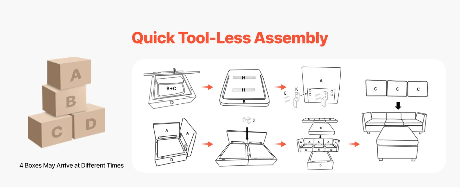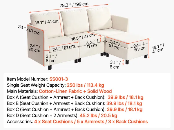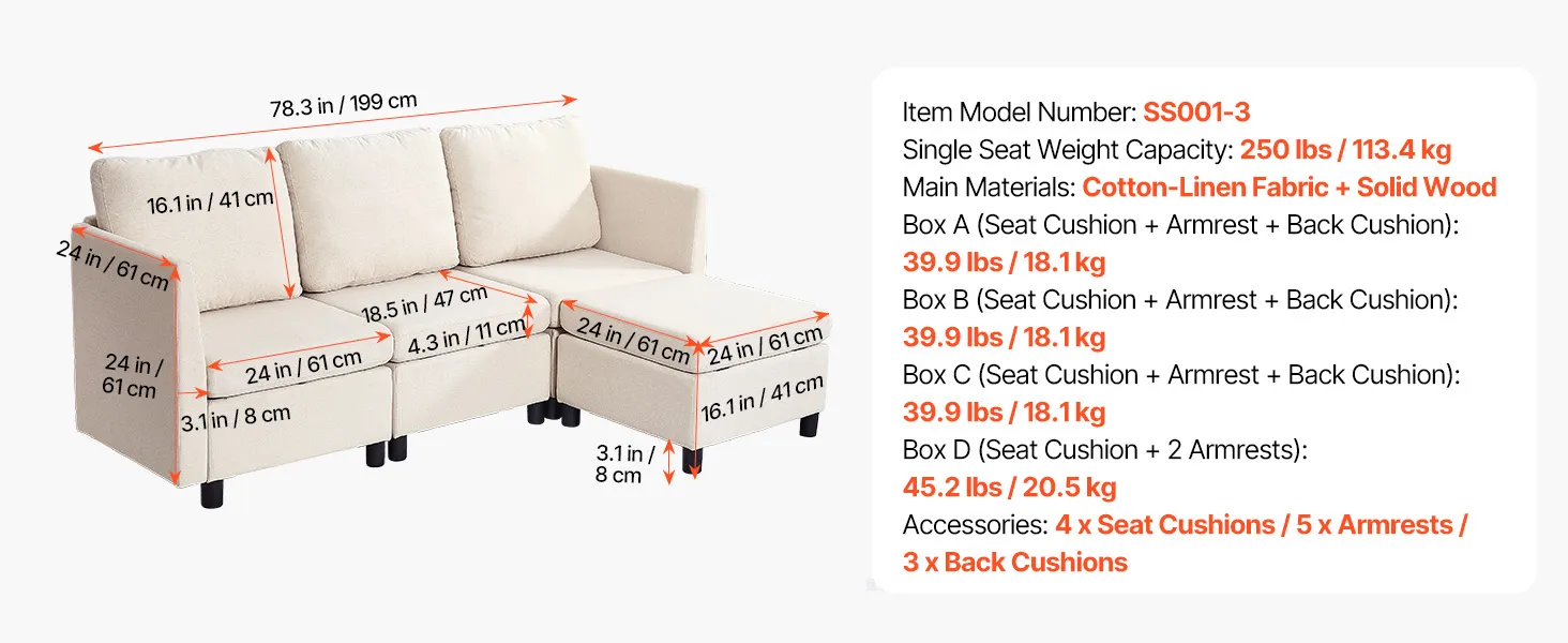 - Box B (Seat Cushion + Armrest + Back Cushion)