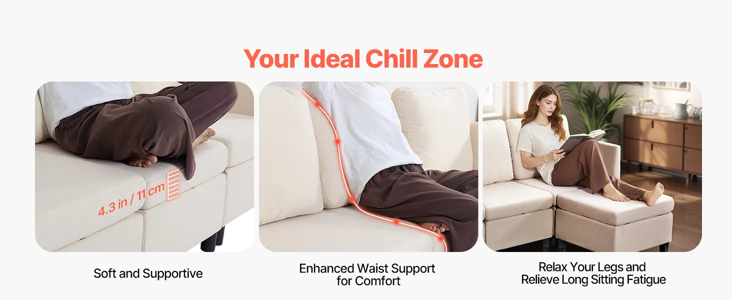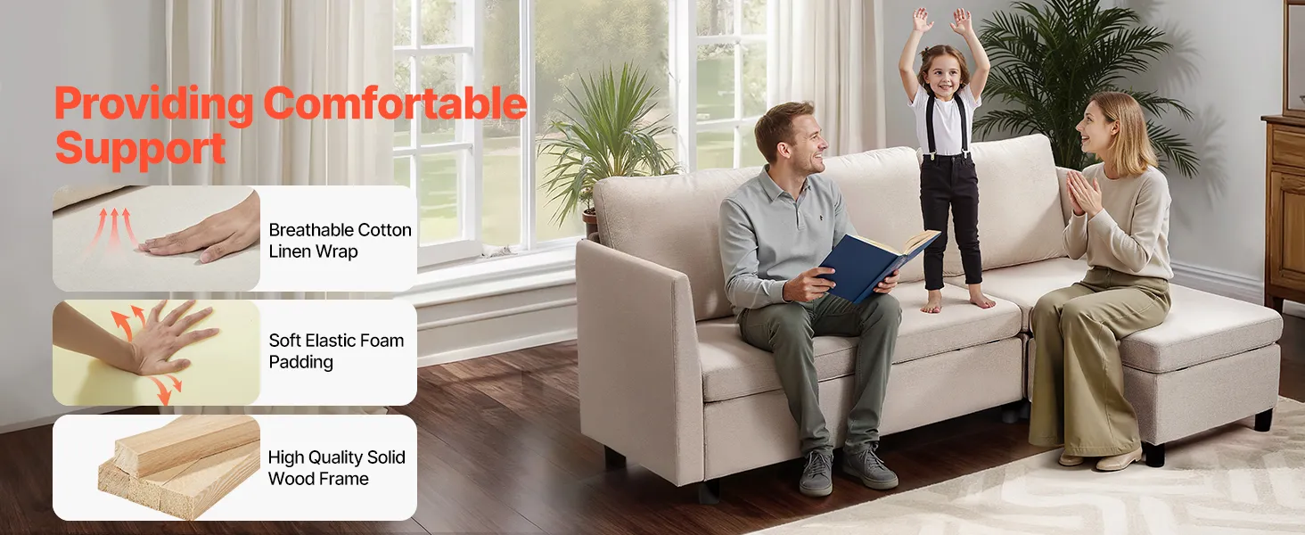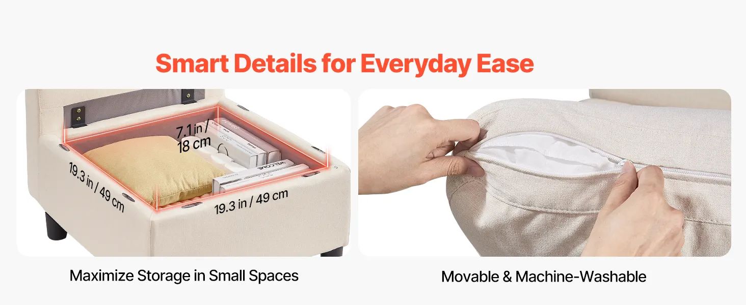 This modular sofa enhances your living room set with high-resilience foam and breathable cotton-linen fabric for lasting comfort. Built-in seat storage saves space while adding practical style to your home.