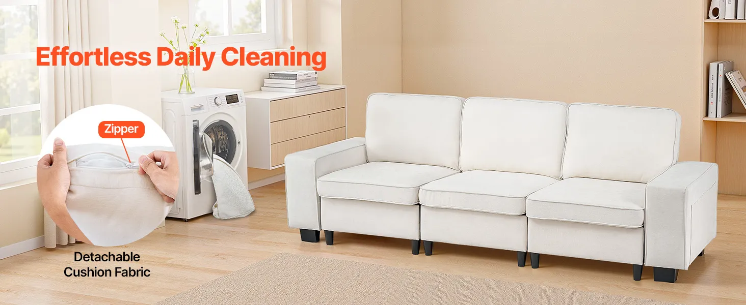 The cushion covers are detachable, making it easy to clean and maintain the sofa. Whether it’s regular dusting or deep cleaning, you can easily keep the modular couch fresh.