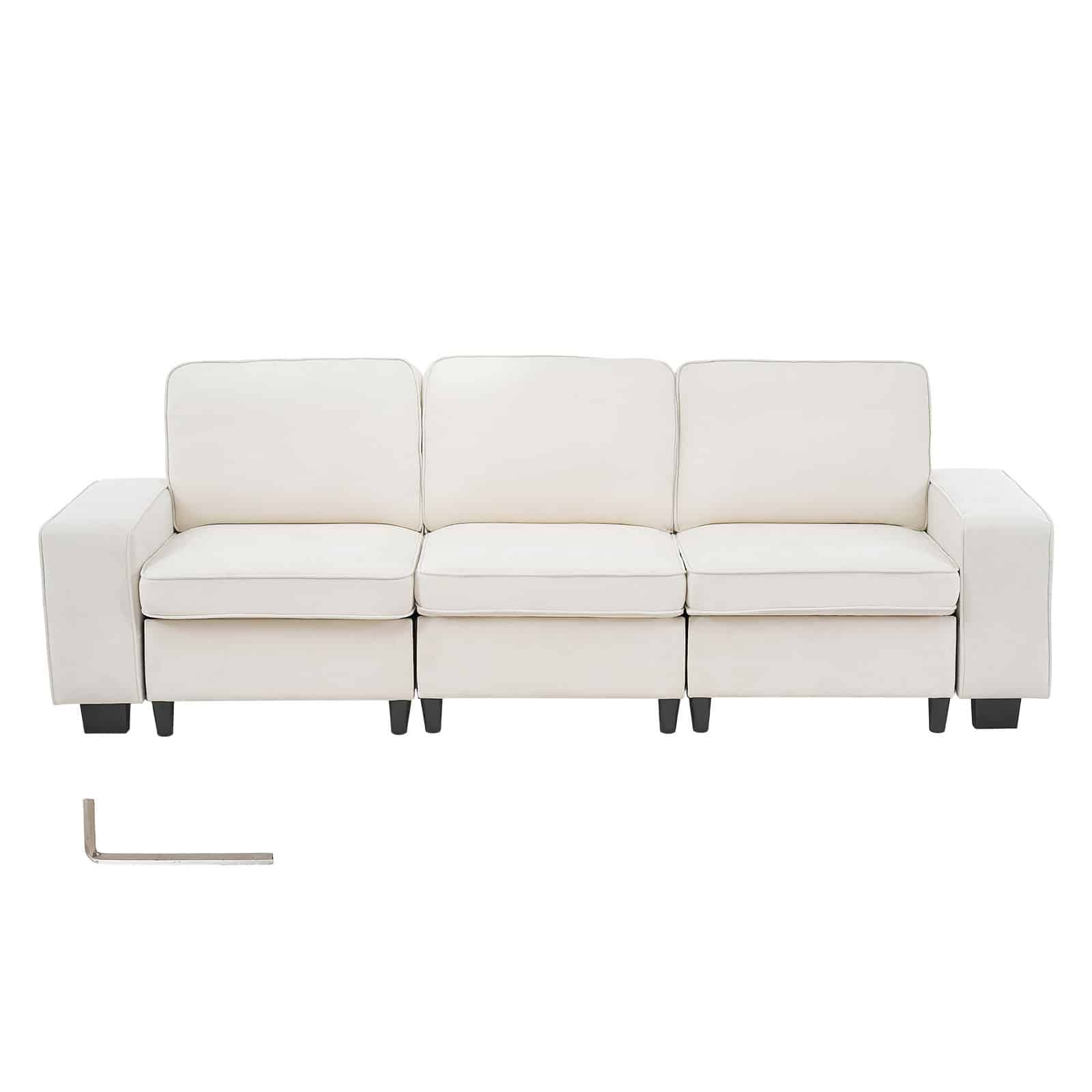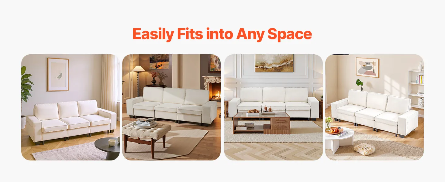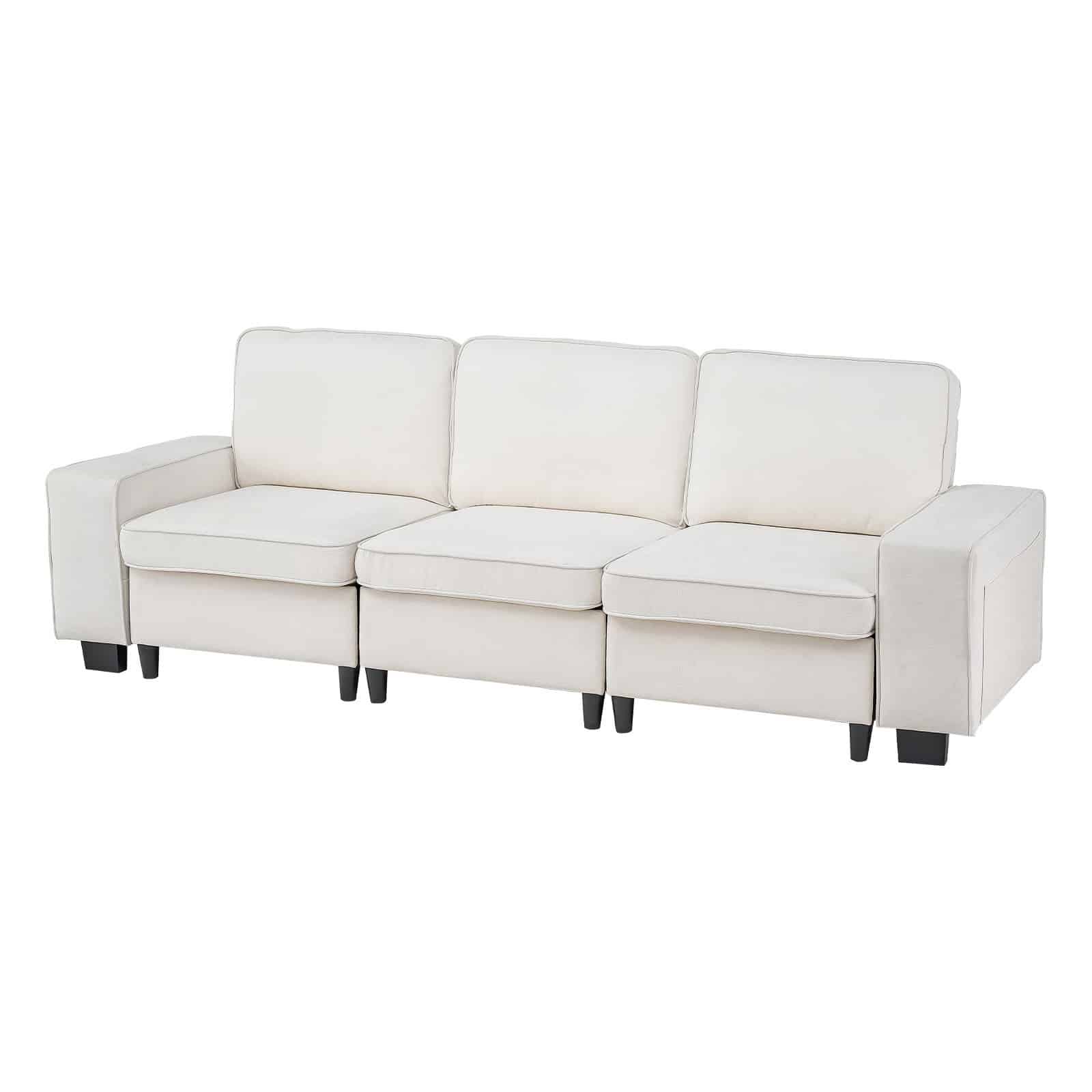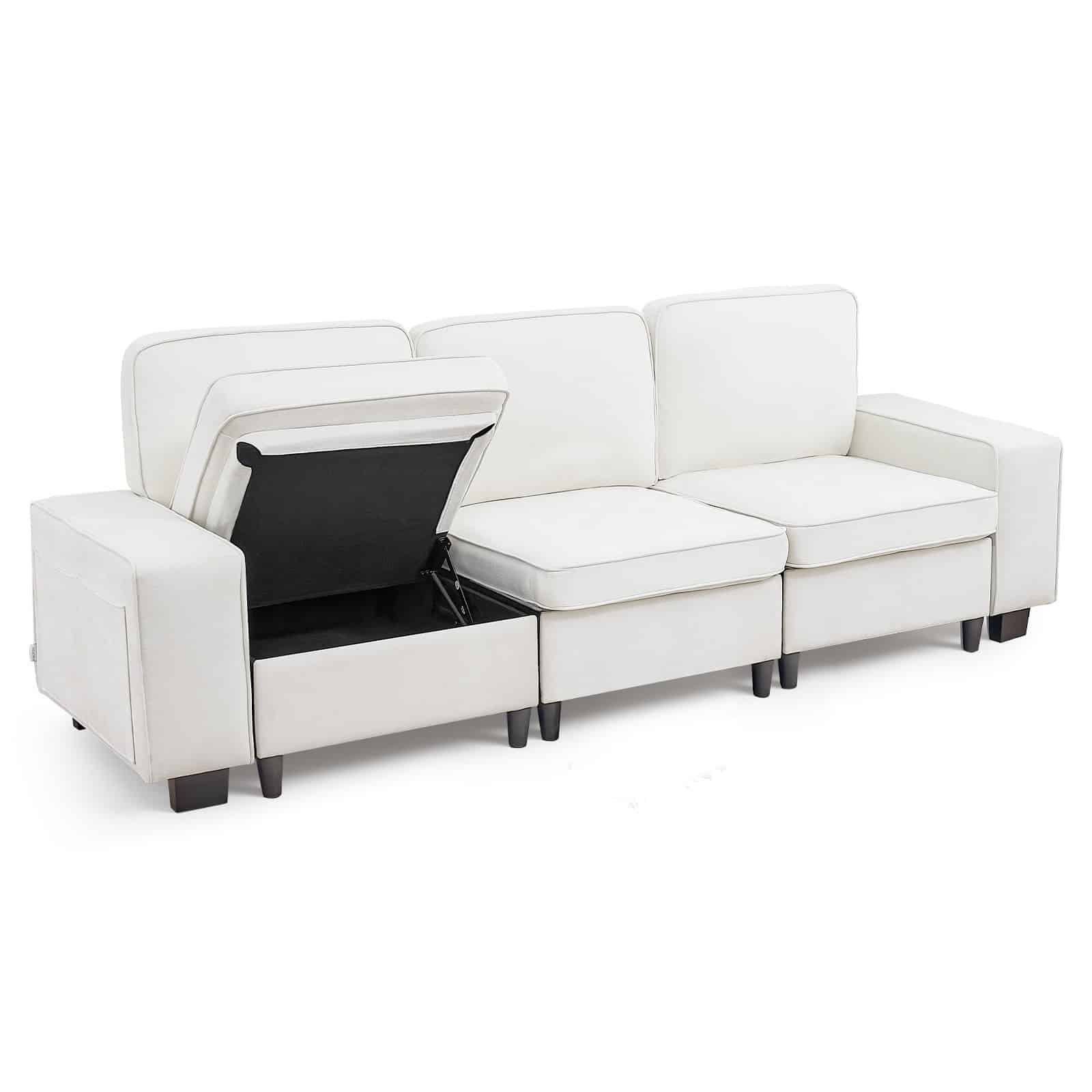 VEVOR 3 Steater Sofa, Modular Sectional Couch with Bottom Storage Space, Modern Comfy Cloud Sofa with Side Storage Pockets and Metal Frame, Ideal for Living Room, Bedroom, Apartment and Office, White