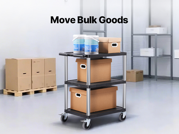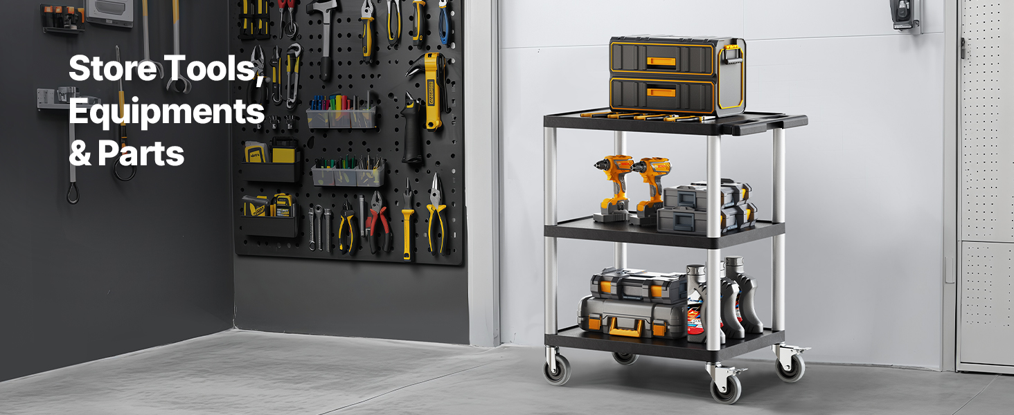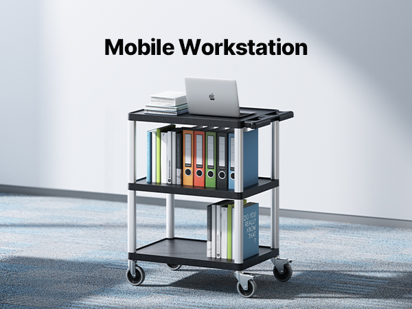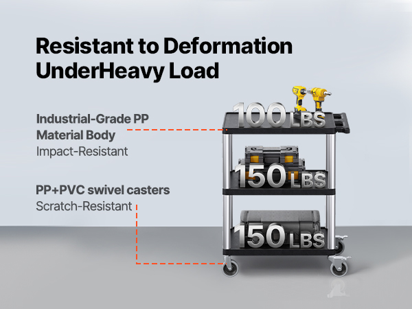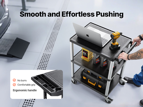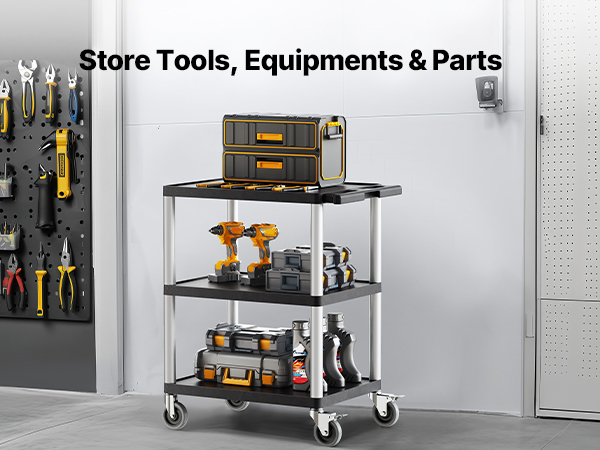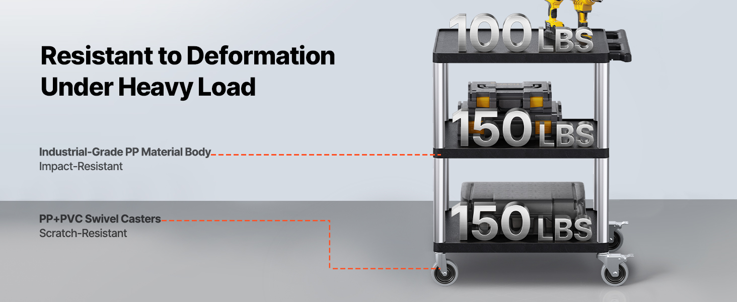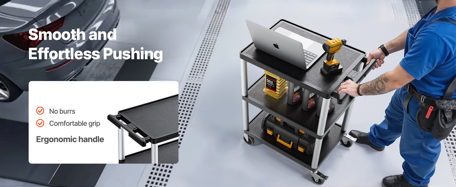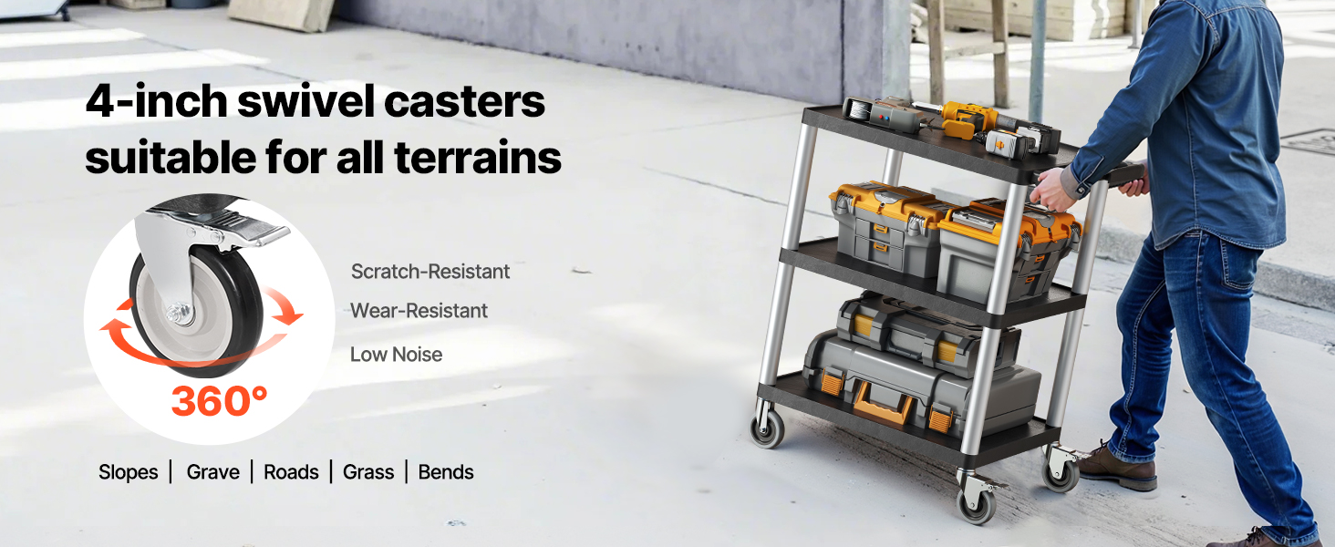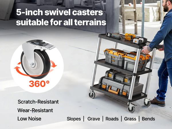 VEVOR 3-Tier Heavy Duty Utility Cart, 136 kg Load, 69.5×46 cm Plastic Cart with Swivel Wheels & Brakes for Warehouse & Garage