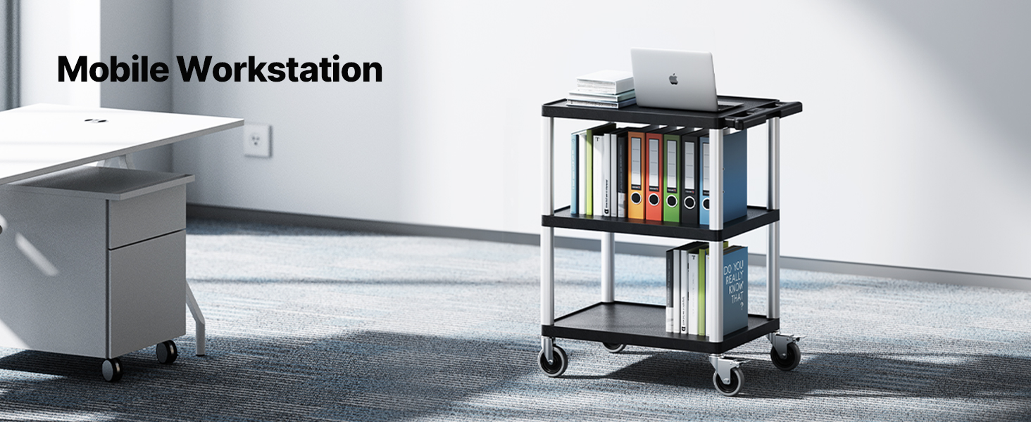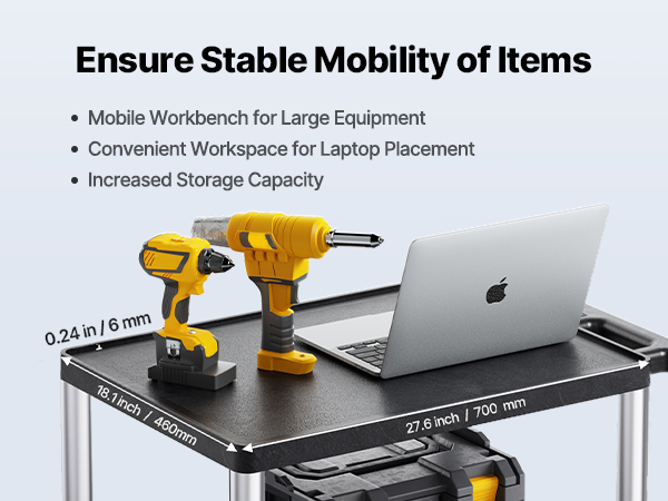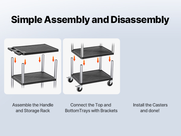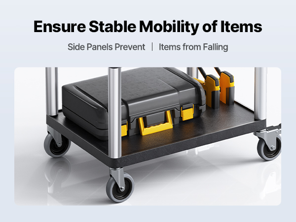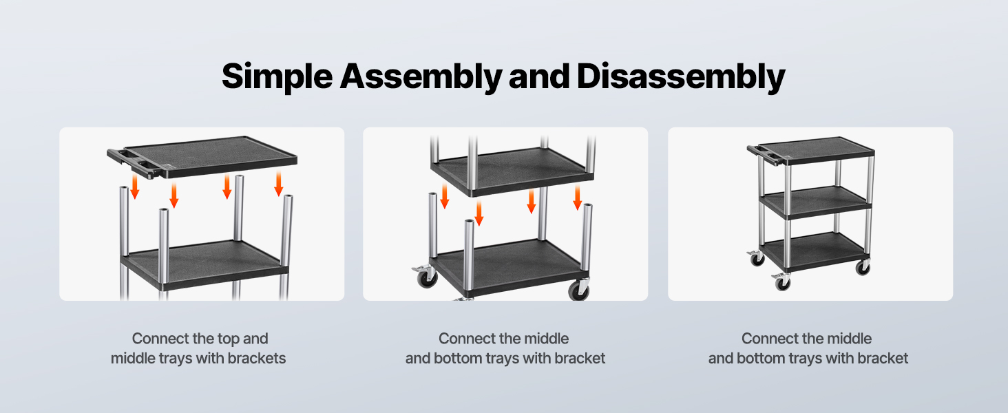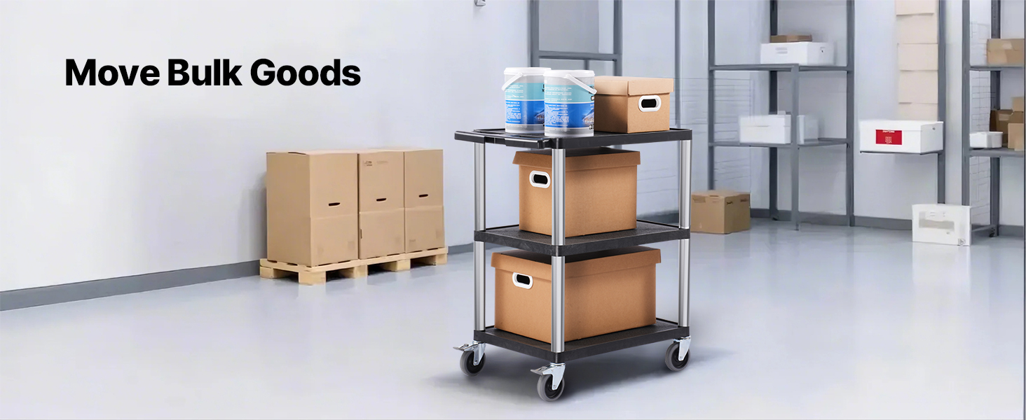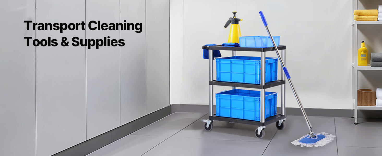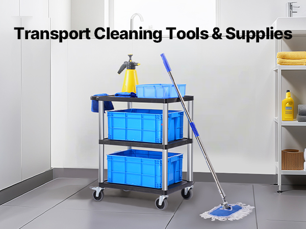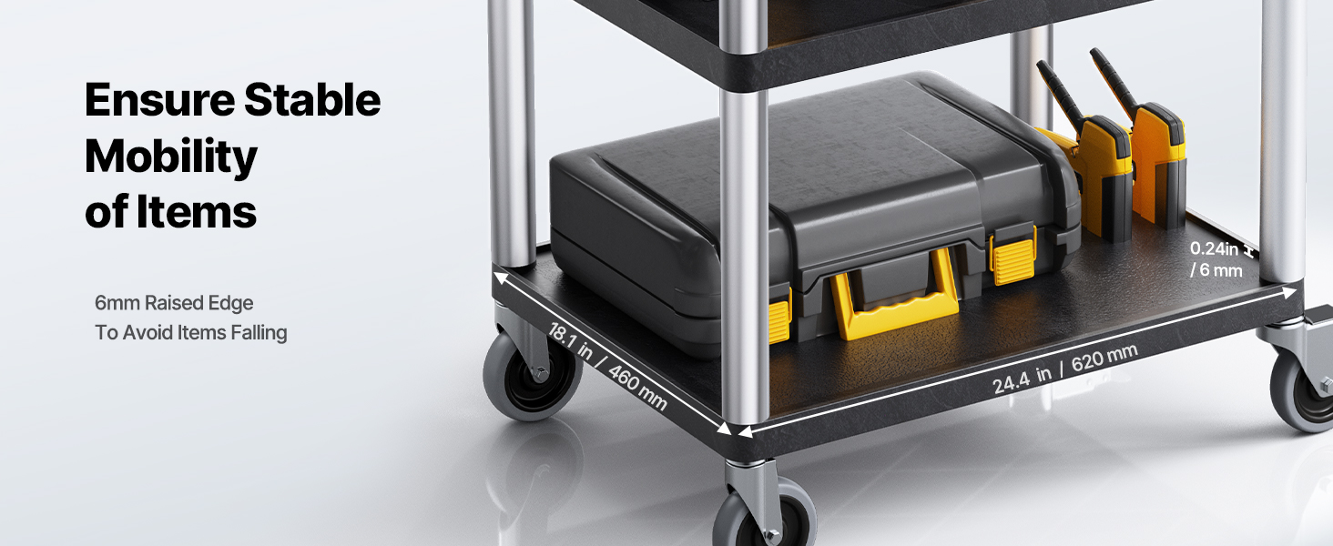 VEVOR 3-Tier Heavy Duty Utility Cart, 136 kg Load, 69.5×46 cm Plastic Cart with Swivel Wheels & Brakes for Warehouse & Garage