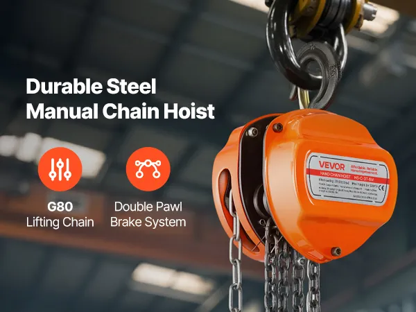 • Durable Steel Structure: Constructed from alloy steel, this manual chain block is built to last. The reinforced casing and G80 heat-treated chain provide superior durability, resistant to corrosion and breakage