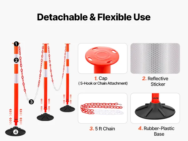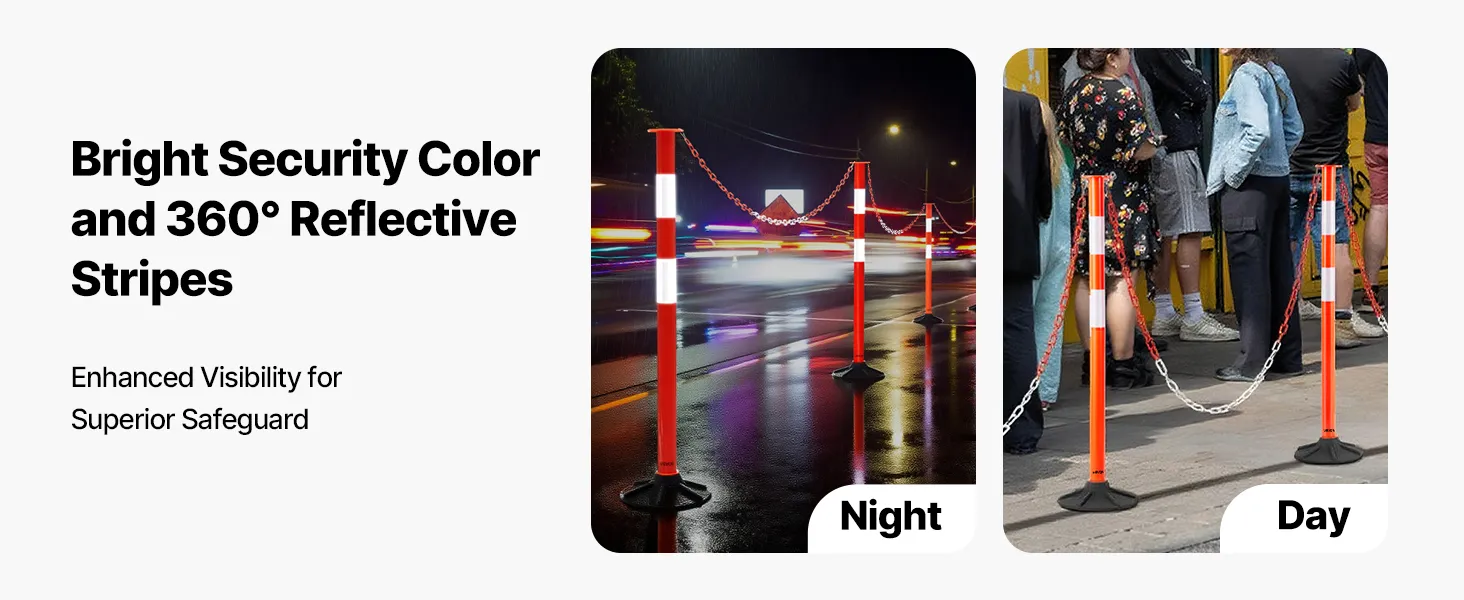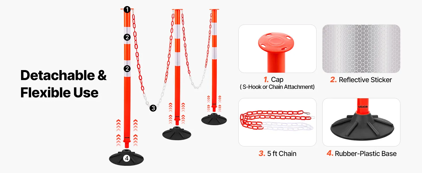 The delineator posts feature bright colors and 360°reflective strips design, ensuring enhanced security for nighttime road warnings. Its detachable design allows for easy storage in emergency vehicles or for large-scale transportation, making it readily accessible when needed.