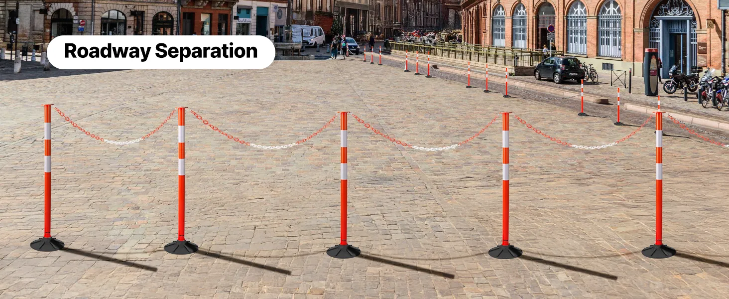 3 Pack Traffic Delineator Posts with Weighted Base & Chains