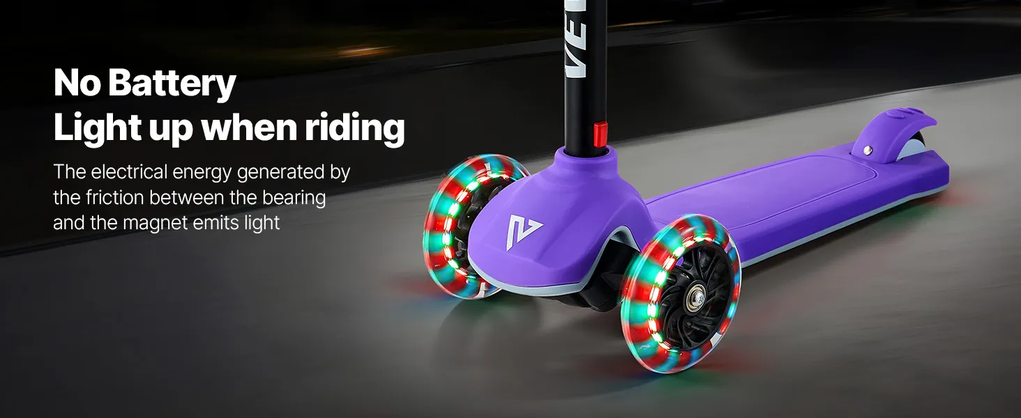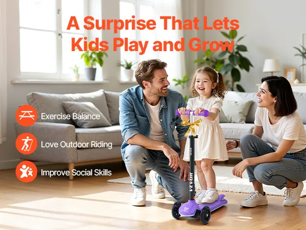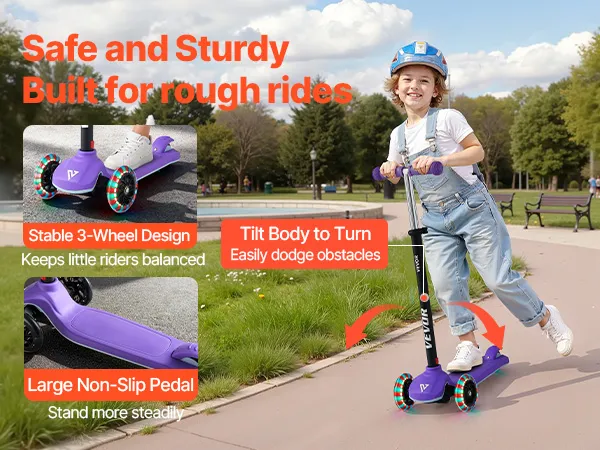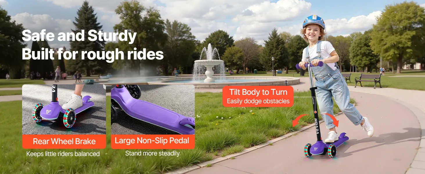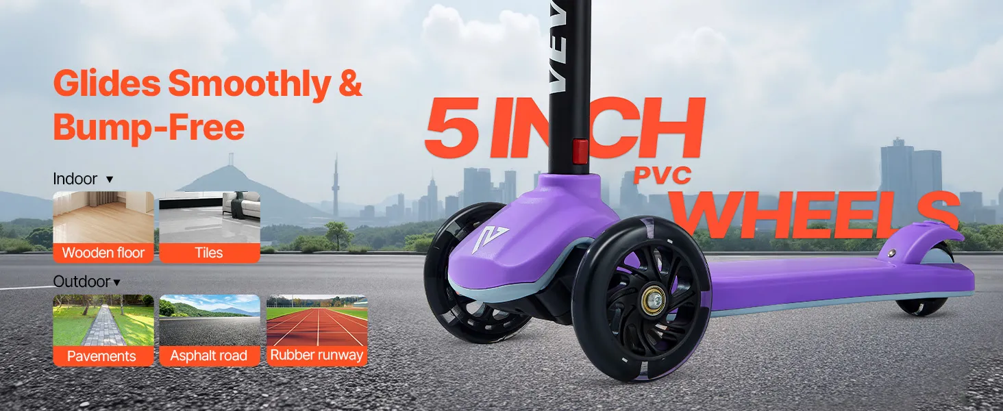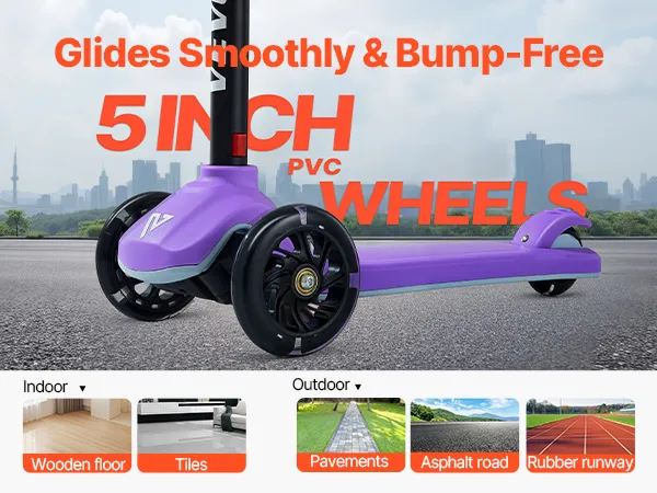 Designed for kids ages 3+, this kids kick scooter brings active fun to childhood. Its durable build and large wheels provide a smooth ride indoors and outdoors, giving parents peace of mind. Lean-to-turn steering helps develop balance and coordination, and beginners can master riding right away.