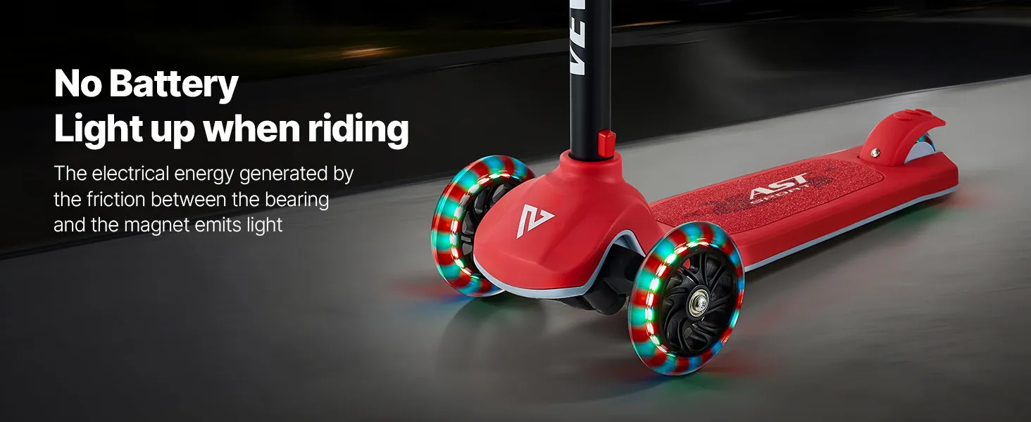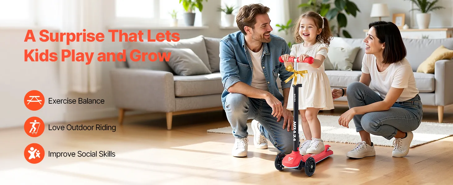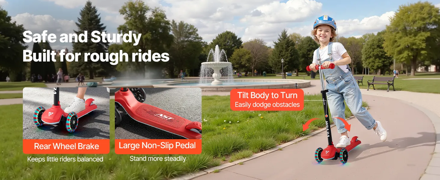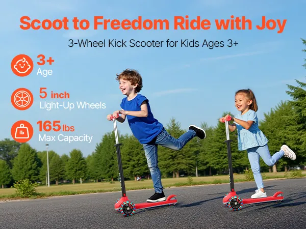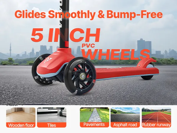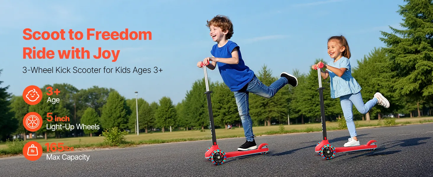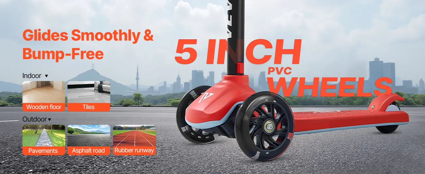 Designed for kids ages 3+, this kids kick scooter brings active fun to childhood. Its durable build and large wheels provide a smooth ride indoors and outdoors, giving parents peace of mind. Lean-to-turn steering helps develop balance and coordination, and beginners can master riding right away.