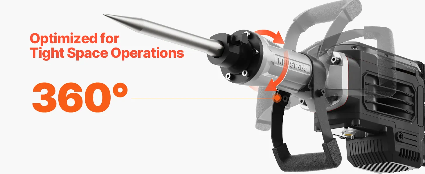 • Ergonomic Design: The 360° adjustable handle of the jack hammer ensures optimal positioning and control, reducing fatigue during extended use. Its secure and comfortable grip provides steady handling even in tough conditions