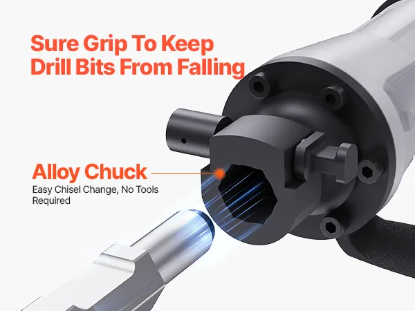 • Built to Last: Featuring a one-piece aluminum alloy housing, this demolition hammer is both lightweight and strong. Paired with alloy steel chisels, it withstands harsh job sites while minimizing wear