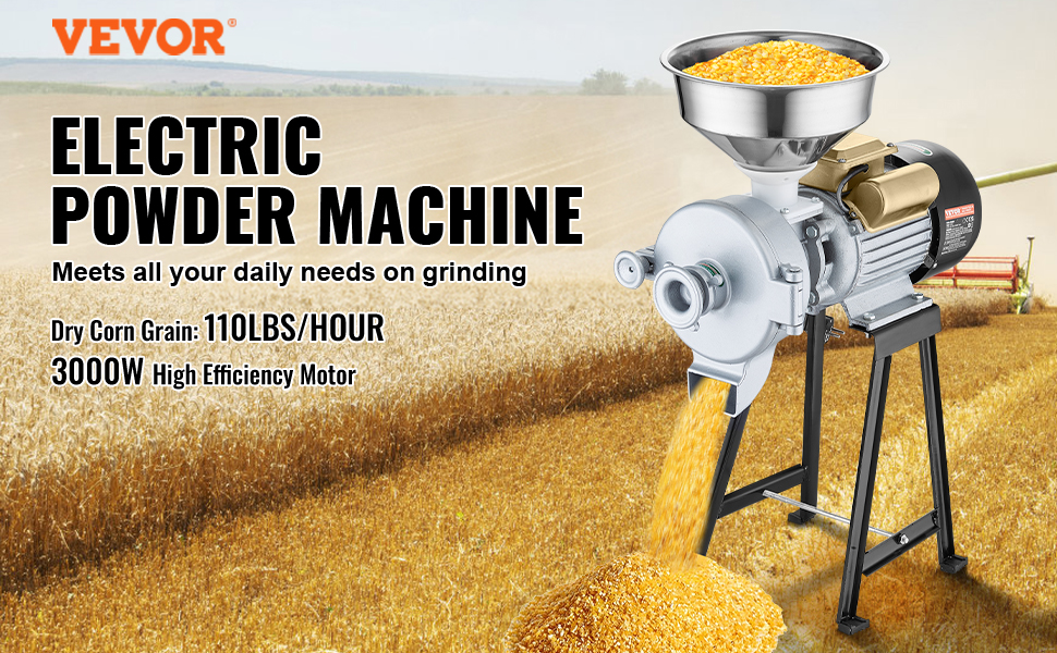 Электрическая зернодробилка VEVOR 3000W для влажного и сухого помола кукурузы, пшеницы, риса, сои и муки
