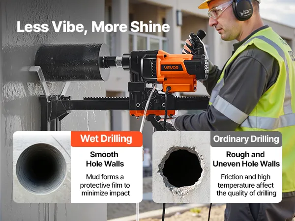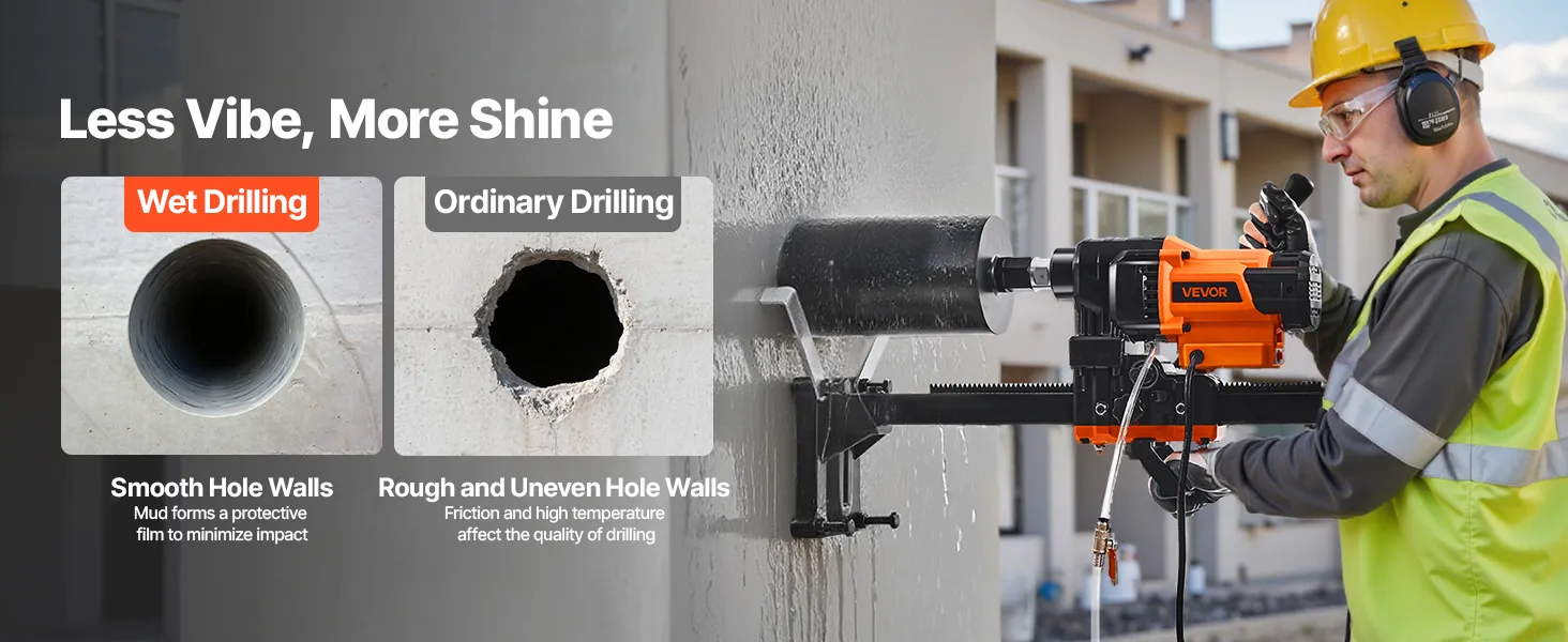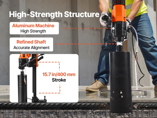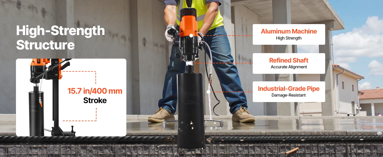 Работайте уверенно. Станок для алмазного колонкового сверления автоматически отключается при перегрузке, чтобы избежать перегорания двигателя, обеспечивая безопасность и долговечность вашего оборудования.