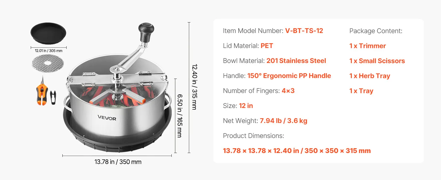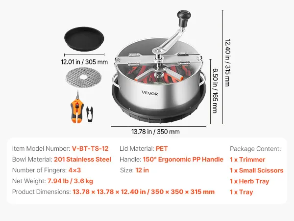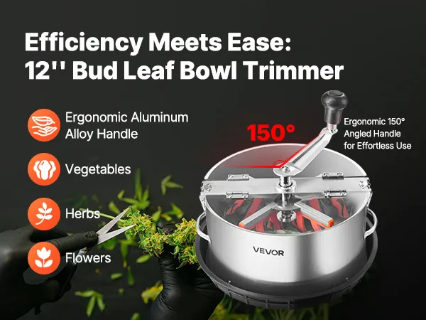 VEVOR Manual Bud Leaf Trimmer, 300mm Reaper Bowl Bud Trimmer with Stainless Steel Blades, Visual Cutting , Wet & Dry Hydroponic Cutting Machine with Tray, Twisted Spin Cut for Plant Buds Flowers