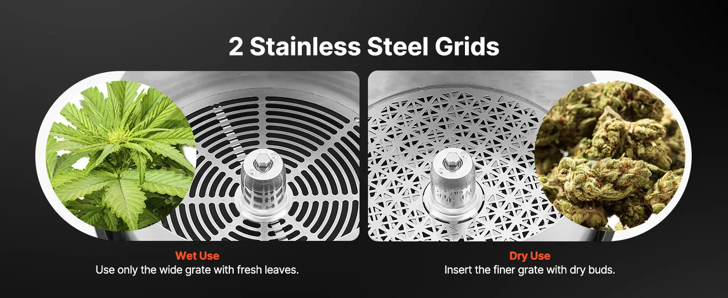 Our leaf bowl trimmer includes two stainless steel grates: use the dense grate for dry trimming, or swap in the wide-slot grate to handle sticky, wet leaves. Easily switch between modes to meet all your garden needs.