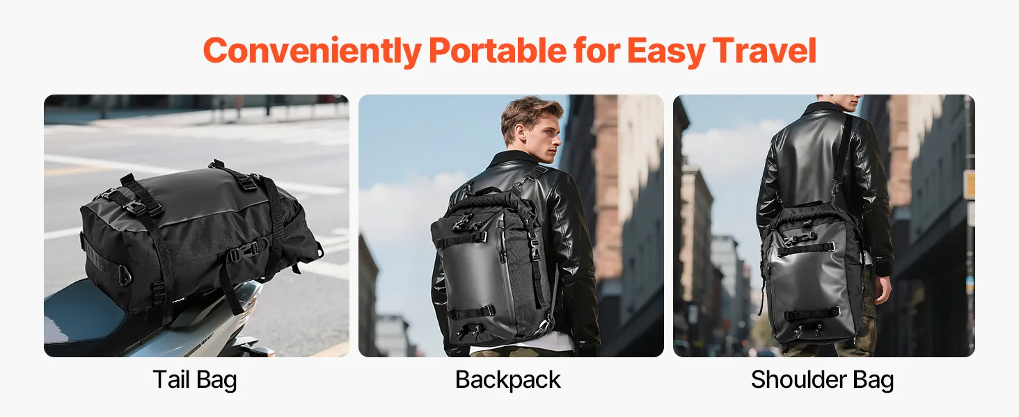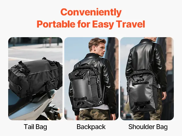 • Multi-Use Bag: Unfasten the buckles to convert this motorcycle seat bag into a backpack or crossbody bag for easy off-bike carrying. It is great for daily commuting