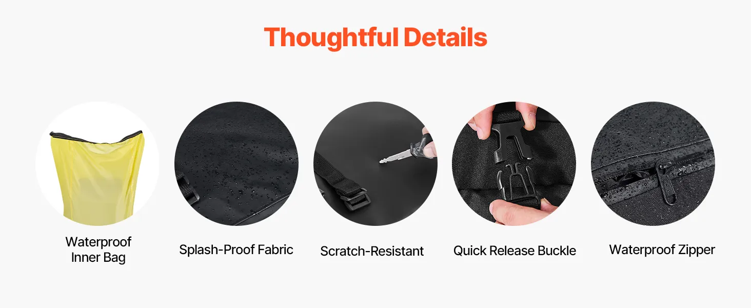 • Durable & Waterproof: The tail bag features a waterproof inner liner to keep items completely dry, plus a rain cover for heavy storms. The high-density nylon shell is splash-resistant and scratch-resistant, making it ideal for daily use