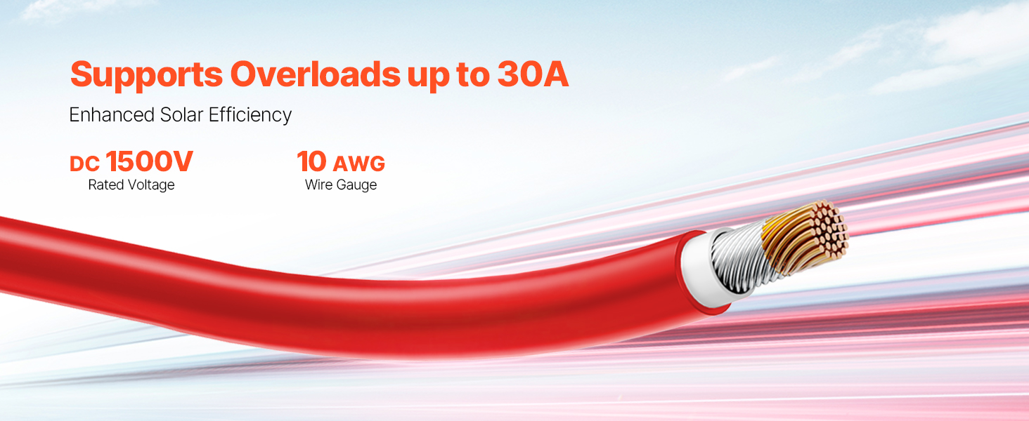 О: Во-первых, убедитесь, что номинальные ток и напряжение кабеля соответствуют спецификациям солнечной системы. Длина этого кабеля составляет 10 AWG.