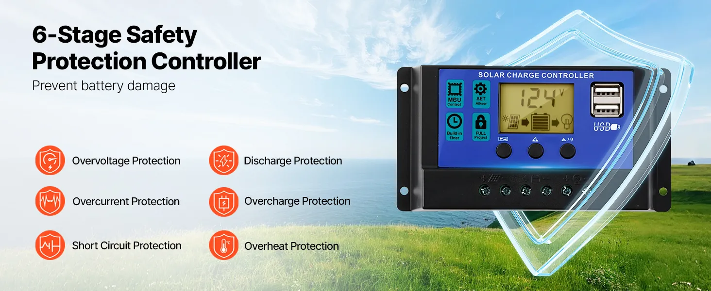 The solar panel battery charger is equipped with an intelligent MPPT controller that provides multiple layers of protection. It automatically stops charging when the battery reaches 12V and resumes charging and maintenance once the voltage drops.