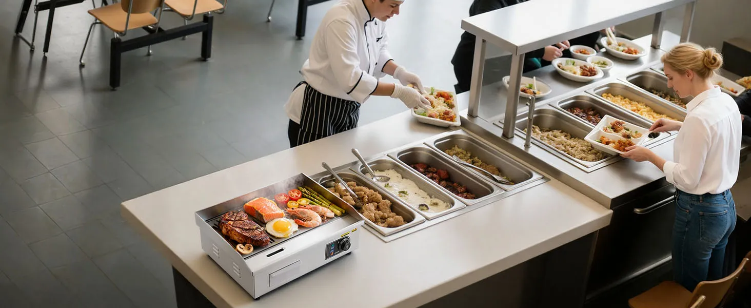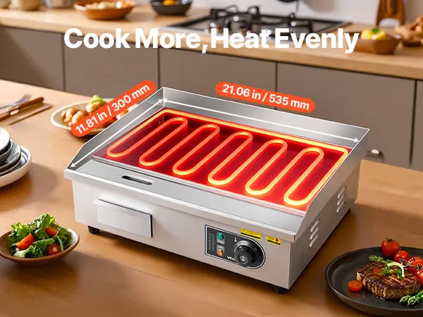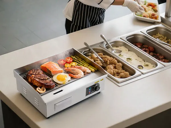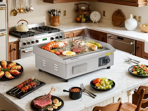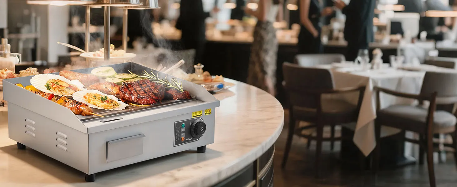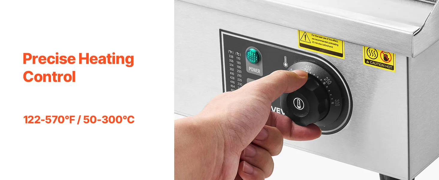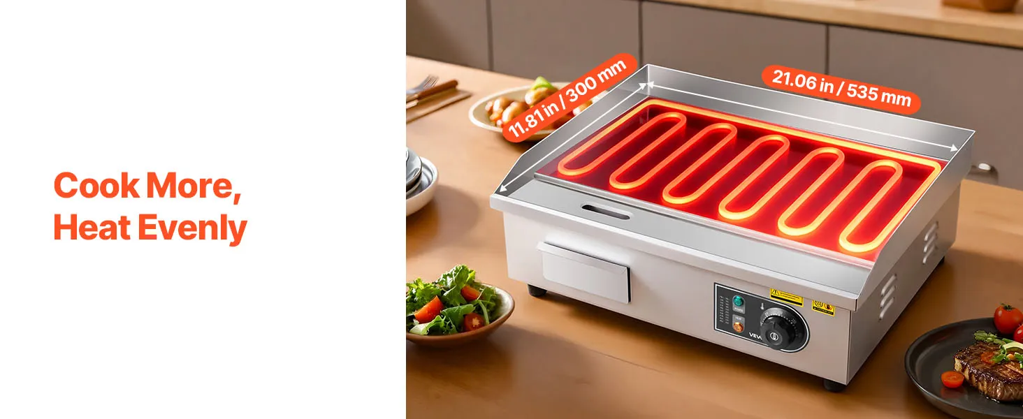 The efficient heat dissipation design of this commercial griddle ensures rapid cooling and stable performance even during extended cooking sessions.