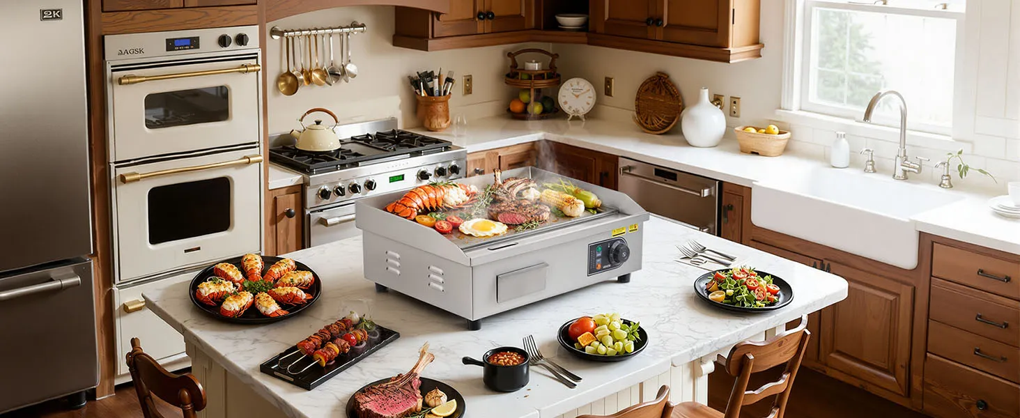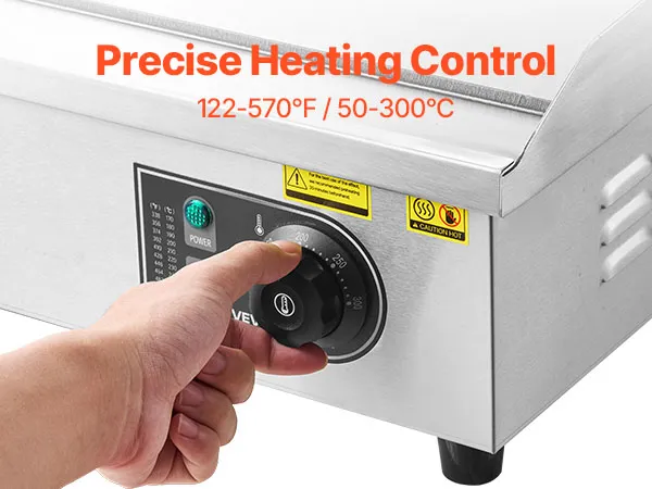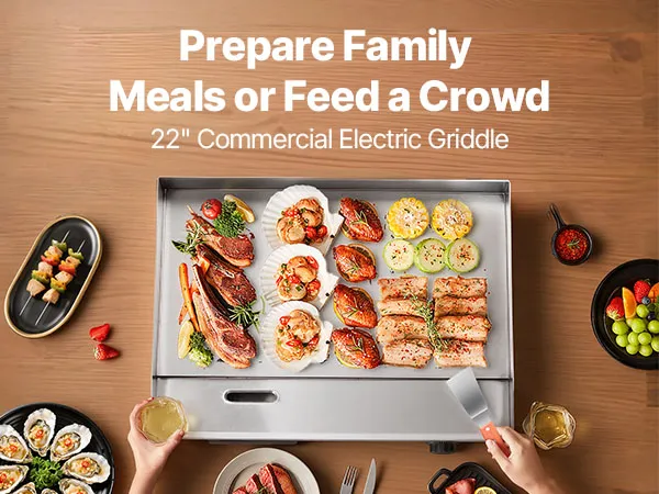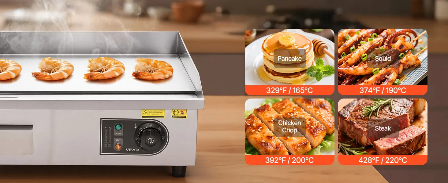 Cook more in less time with our 3200W commercial electric griddle. Even heat and precise temperature control ensure pancakes, steak, chicken, and more are perfectly cooked. Its easy-clean design makes cleanup quick and simple.