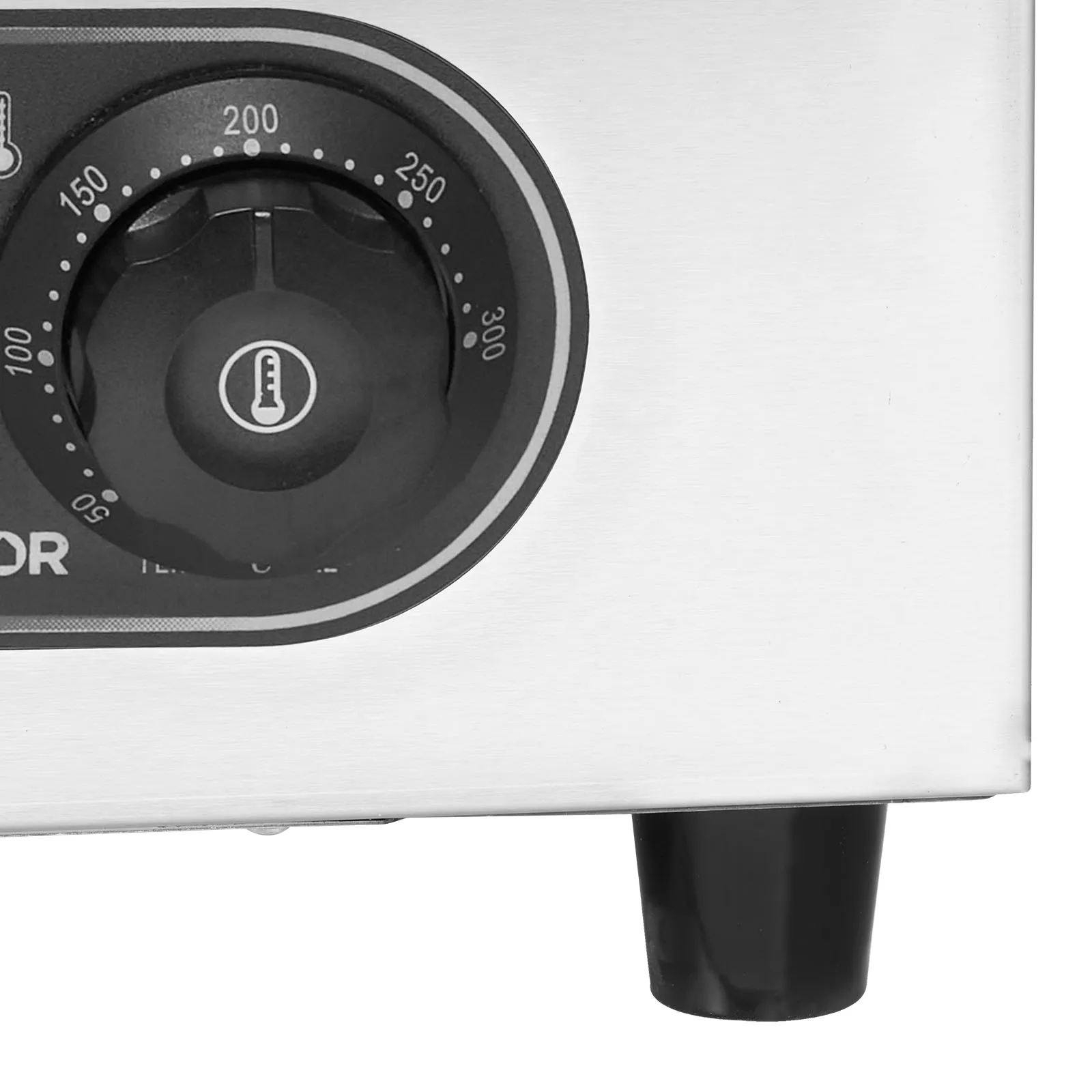 The splash guard on this stainless steel electric griddle helps reduce oil splashes, keeping your kitchen tidy.