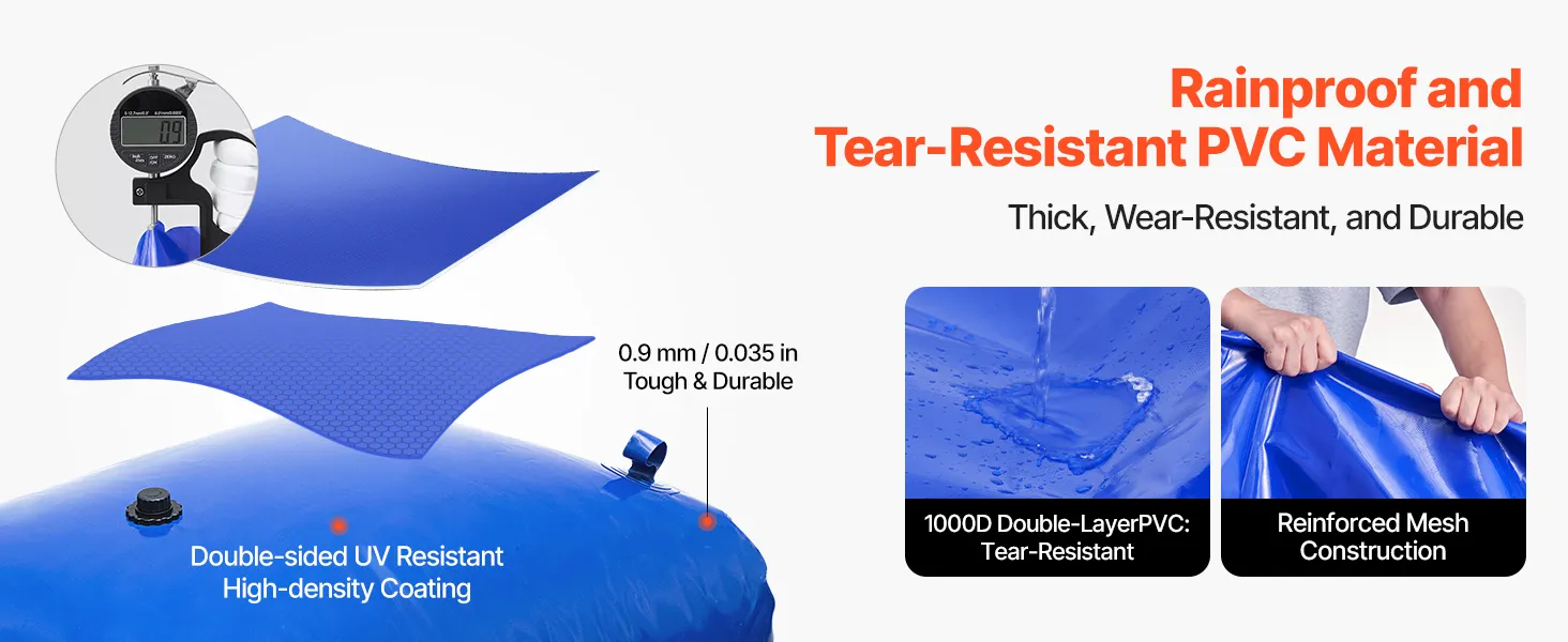 Made of durable 1000D double-layer PVC, this water storage bladder is rainproof, flame-retardant, wear-resistant, and easy to mold, making it ideal for daily home use, outdoor activities, camping, and agricultural irrigation.