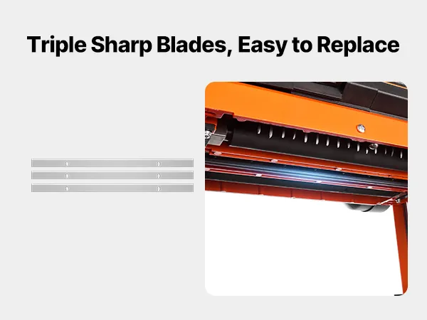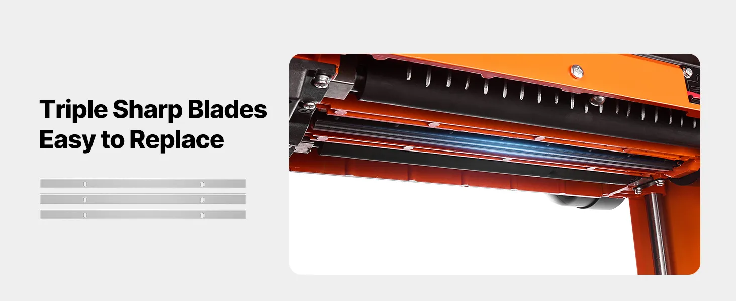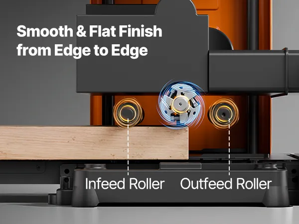A: The planer features dual rollers at infeed/outfeed ports for stable feeding. It ensures the worktable is level during use, or add sacrificial scrap boards before/after your project boards.