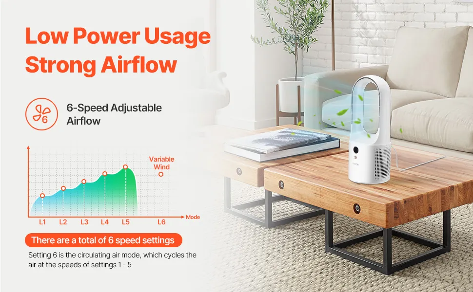 • Простое управление: Бесшумный офисный вентилятор с кнопочным управлением оснащен ЖК-дисплеем и отзывчивыми сенсорными кнопками, позволяющими плавно регулировать 6 скоростей ветра. От легкого бриза до сильного воздушного потока - он адаптируется к вашим потребностям в охлаждении, делая каждое мгновение освежающим.