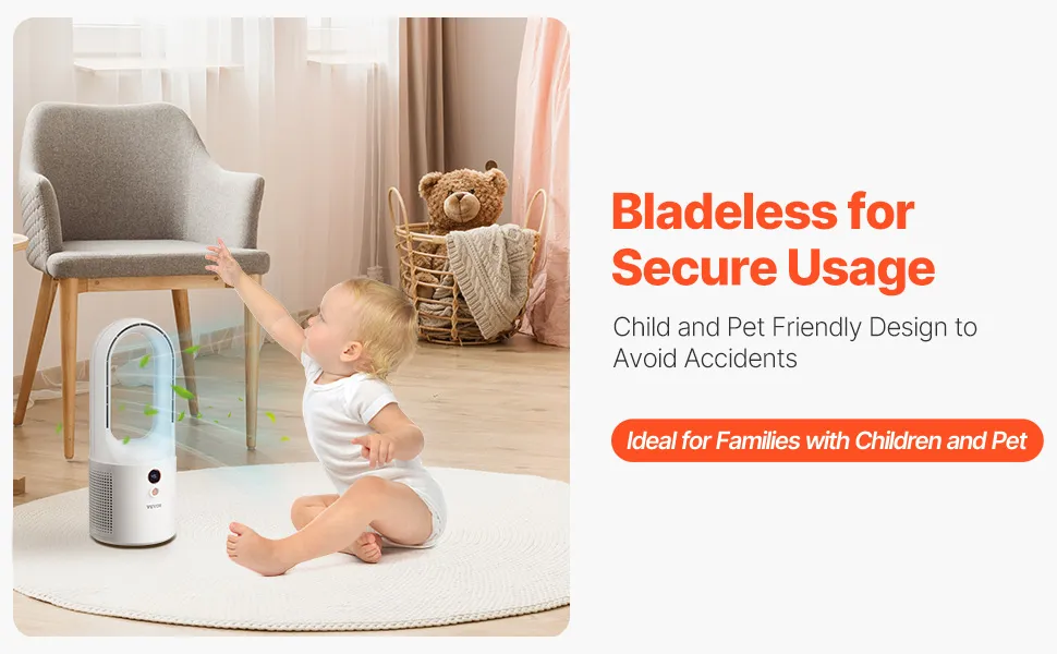 • Безопасная конструкция без лопастей: Инновационный настольный вентилятор без лопастей позволяет избежать опасностей, связанных с традиционными лопастями, что делает его идеальным для домов с младенцами и домашними животными. Благодаря аэродинамическим принципам и надежной решетке воздухозаборника, он обеспечивает плавный поток воздуха при увеличенном объеме ветра, обеспечивая душевное спокойствие при каждом дуновении ветерка.