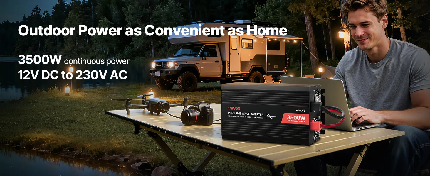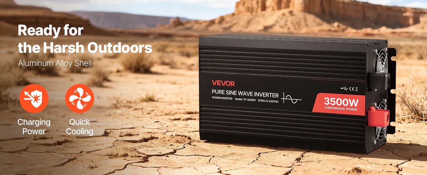 Our high-performance inverters delivering stable power for USB, AC, and Type-C devices. Lightweight aluminum alloy housing ensures durability for RVs, camping, field work, or emergency backup, while multiple protections safeguard your devices and extend inverter lifespan.