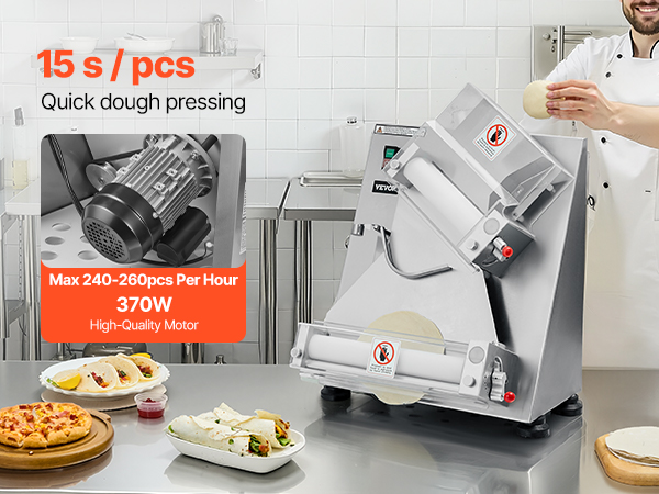 VEVOR Pizza Dough Roller Sheeter, 3-14 Inch Automatic Stainless Steel Pizza Press, Commercial Electric 370W Pasta Maker Machine, 260 pcs Per Hour, Adjustable Thickness, with Dough Press Lid