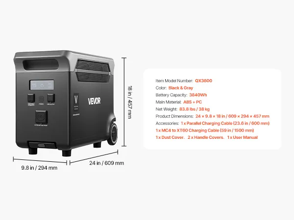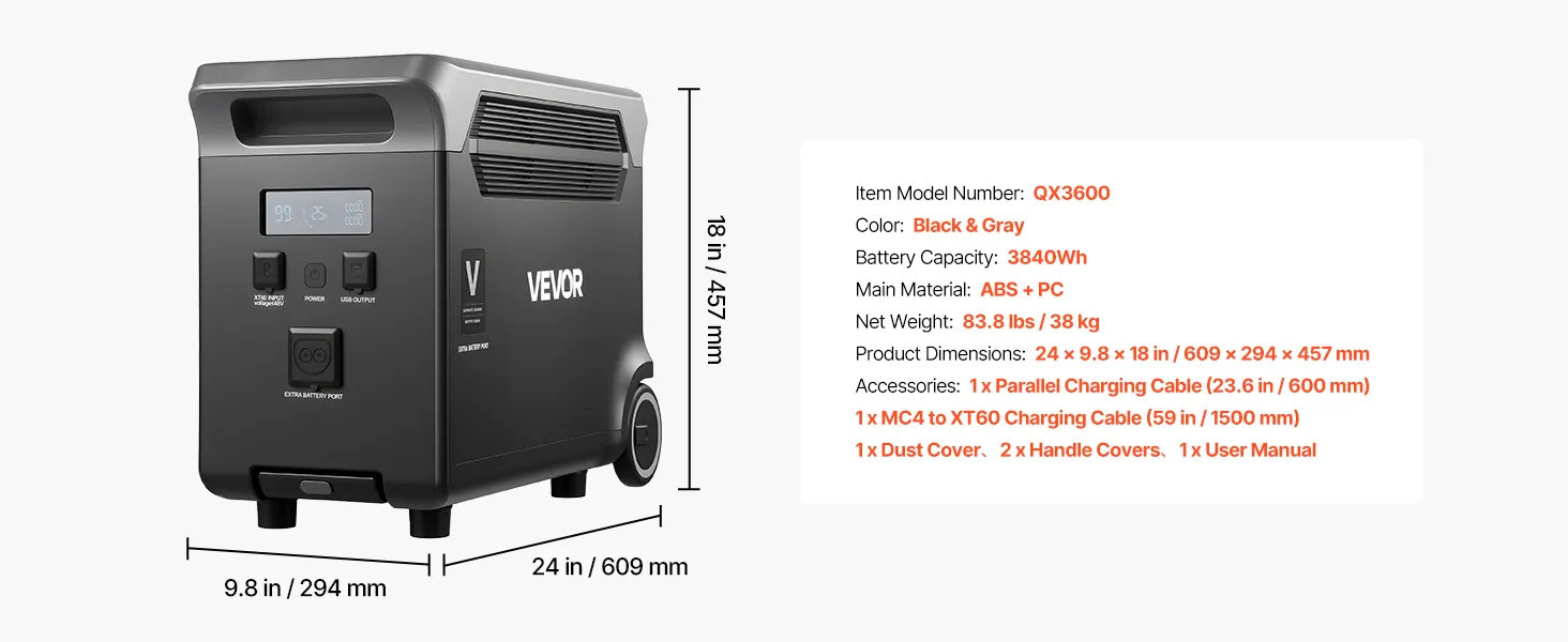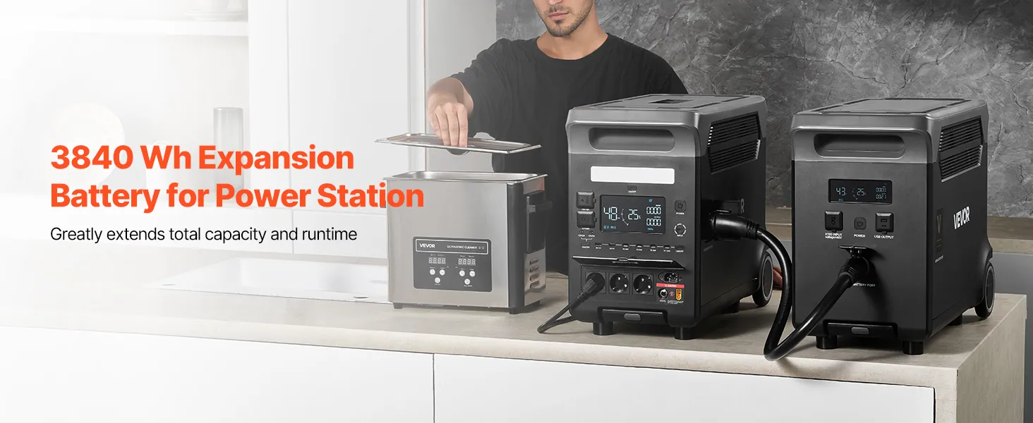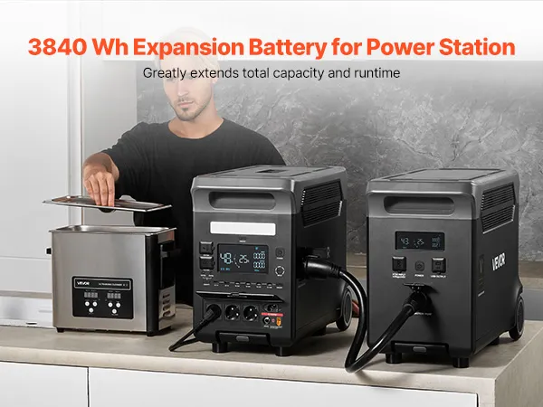 VEVOR Extra Battery for Portable Power Station, 3840Wh LiFePO4 Extra Expansion Battery with 3 Output Ports for Home Use, Outdoor Camping, Road Trips, RVs, Emergencies