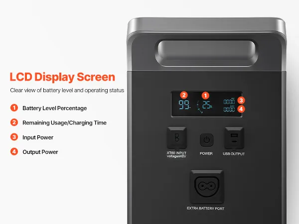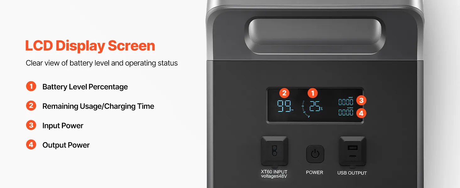 Clearly shows battery percentage, remaining usage/charging time, input power, and output power, giving you real-time operating status for safer and easier use.