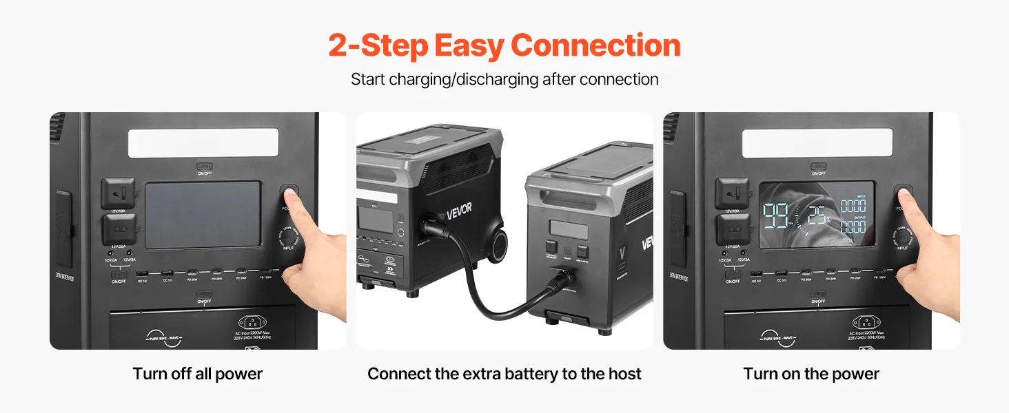 Includes a 23.6 inch (600mm) parallel charging cable for easy and secure connection. Please ensure both the main unit and the extra battery are turned off before making the connection.