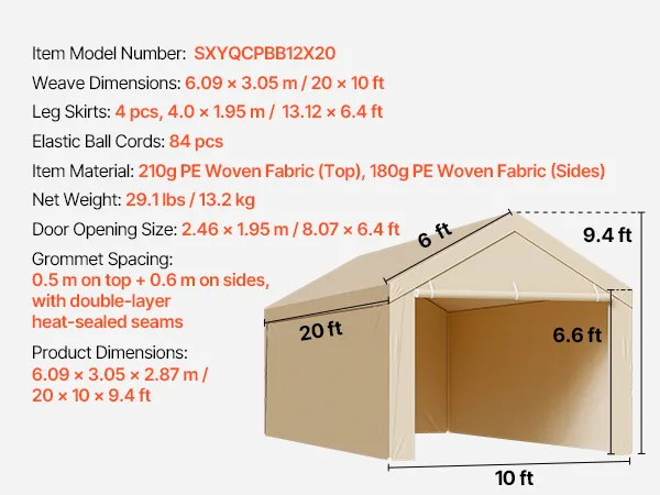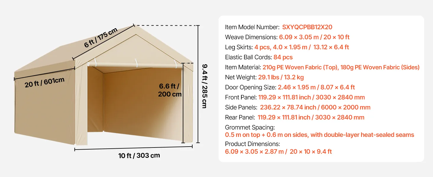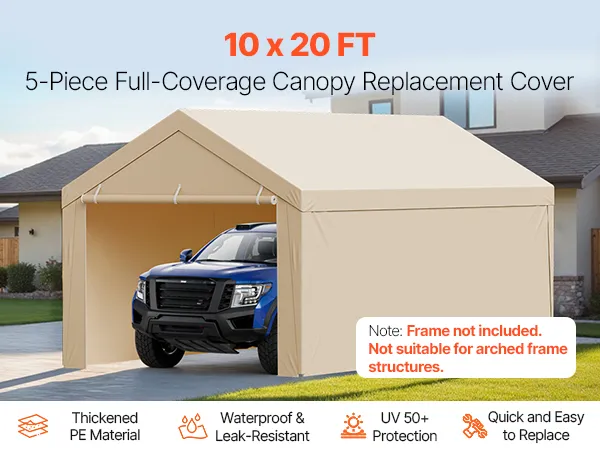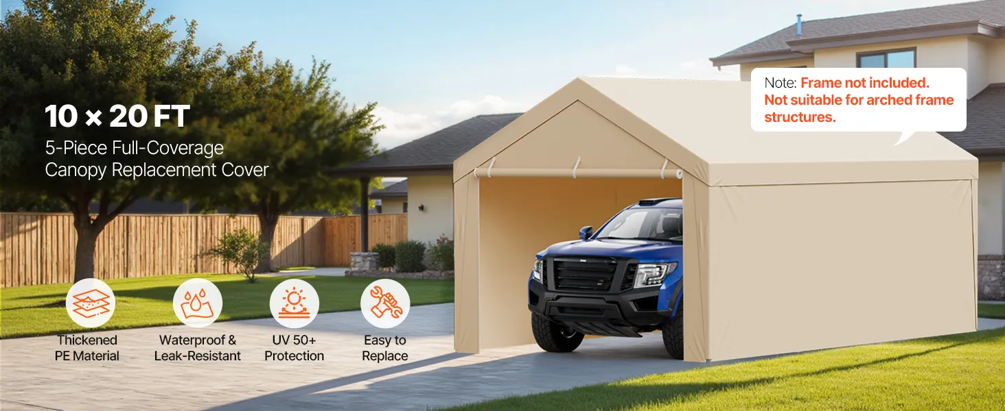 The standard 10×20 ft carport replacement cover is designed to fit most carport frames. No trimming or modifications required for easy replacement. It is ideal for quick DIY replacement.