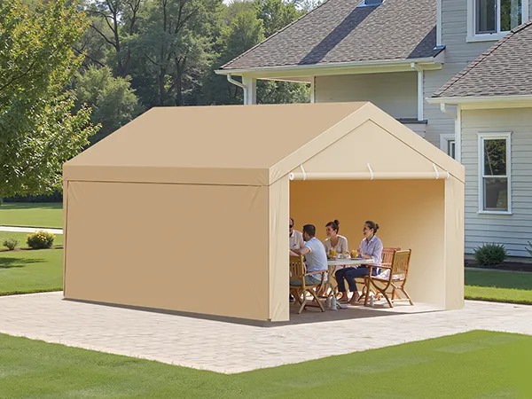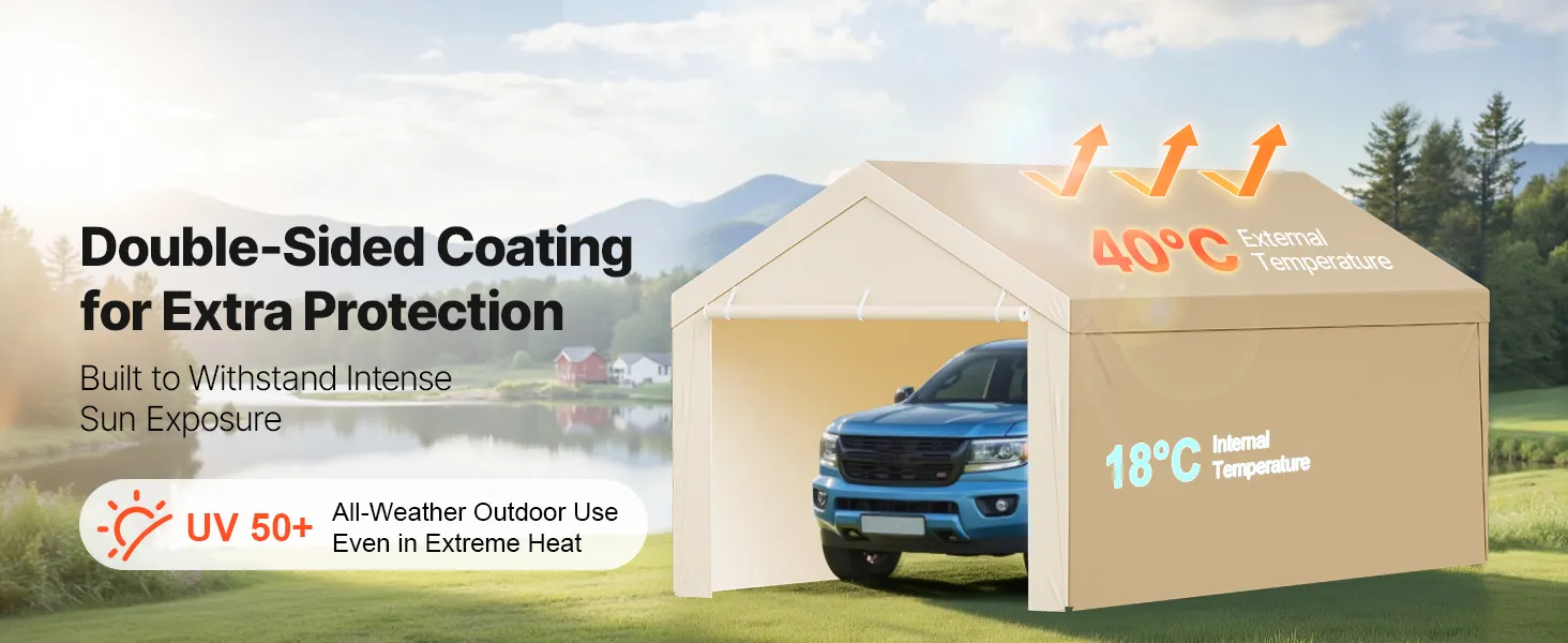 VEVOR Carport Replacement Canopy, 3 x 6 m Potable Garage Tent Top Tarp with Sidewalls, UV-Resistant & Waterproof, Heavy Duty Car Shelter Tarp with Ball Buggees, Beige, Frame Not Included
