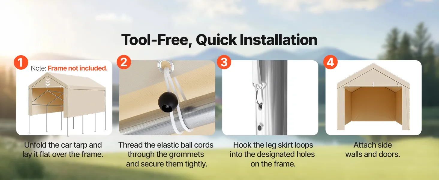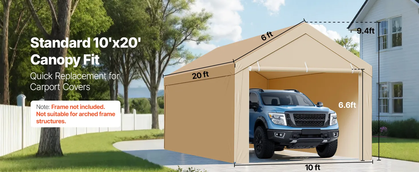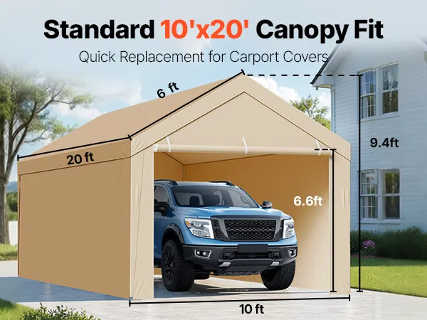 The standard 10×20 ft carport replacement cover is designed to fit most carport frames. No trimming or modifications required for easy replacement. It is ideal for quick DIY replacement.