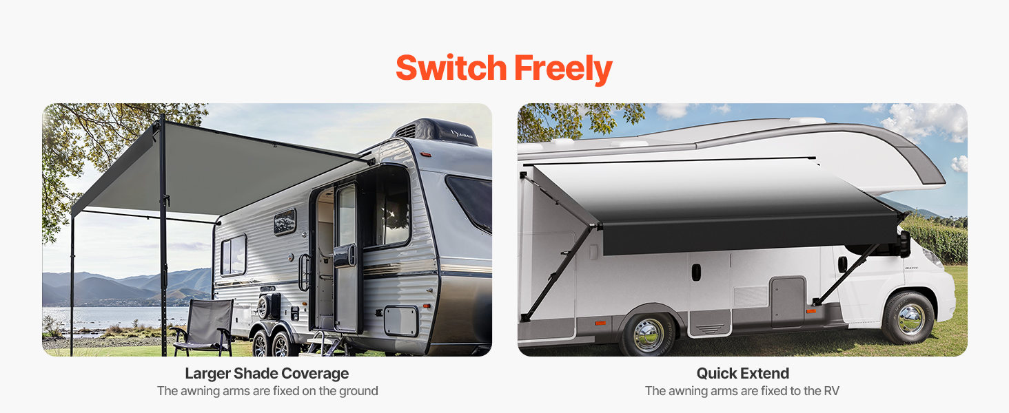 VEVOR Manual RV Awning Complete Kit, 14' Retractable Awning with Aluminum Alloy Frame, Outdoor Trailer Awning, Fit for Most RVs(Black Fade)
