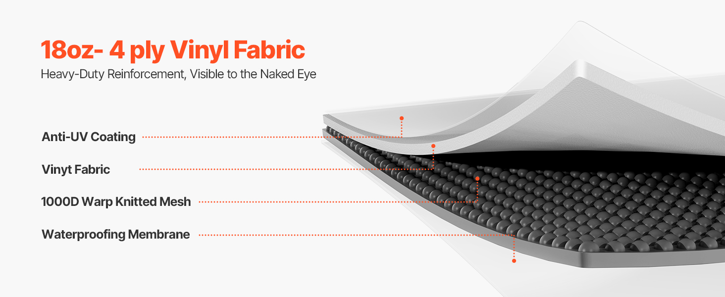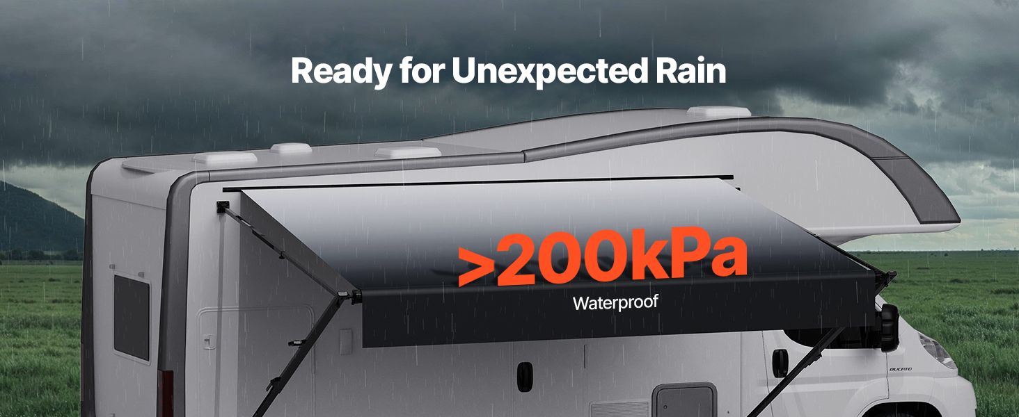 Мы предлагаем прочный тент для дома на колесах из модернизированной 4-слойной ПВХ-виниловой ткани весом 18 унций, предназначенной для защиты от изменения погодных условий. Каркас из усиленного алюминиевого сплава водонепроницаем, устойчив к коррозии и обеспечивает длительную стабильность и долговечность.