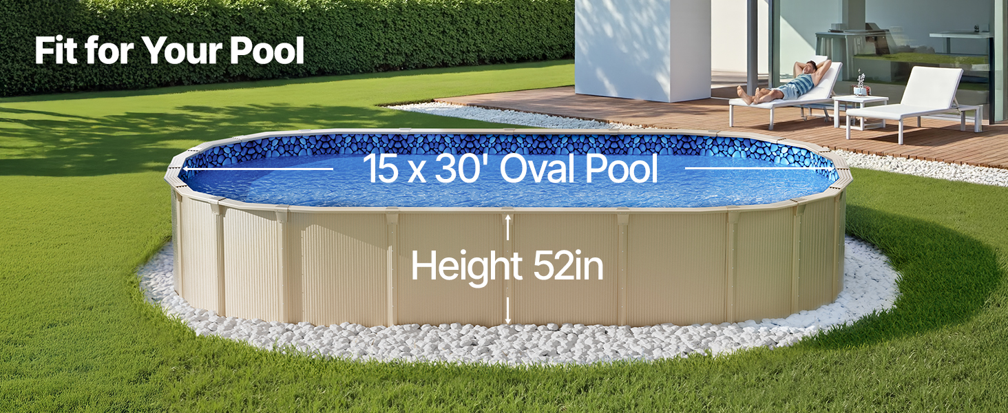 VEVOR Oval Pool Liner 15x30ft Unibead Style Pool Liner 52in Wall Height
