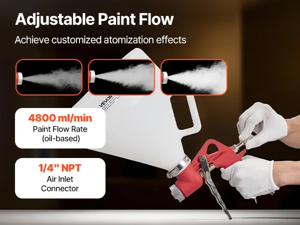 This air texture spray gun delivers a paint flow rate of up to 4800 ml/min (oil-based) with adjustable flow control, allowing you to easily achieve customized atomization effects.