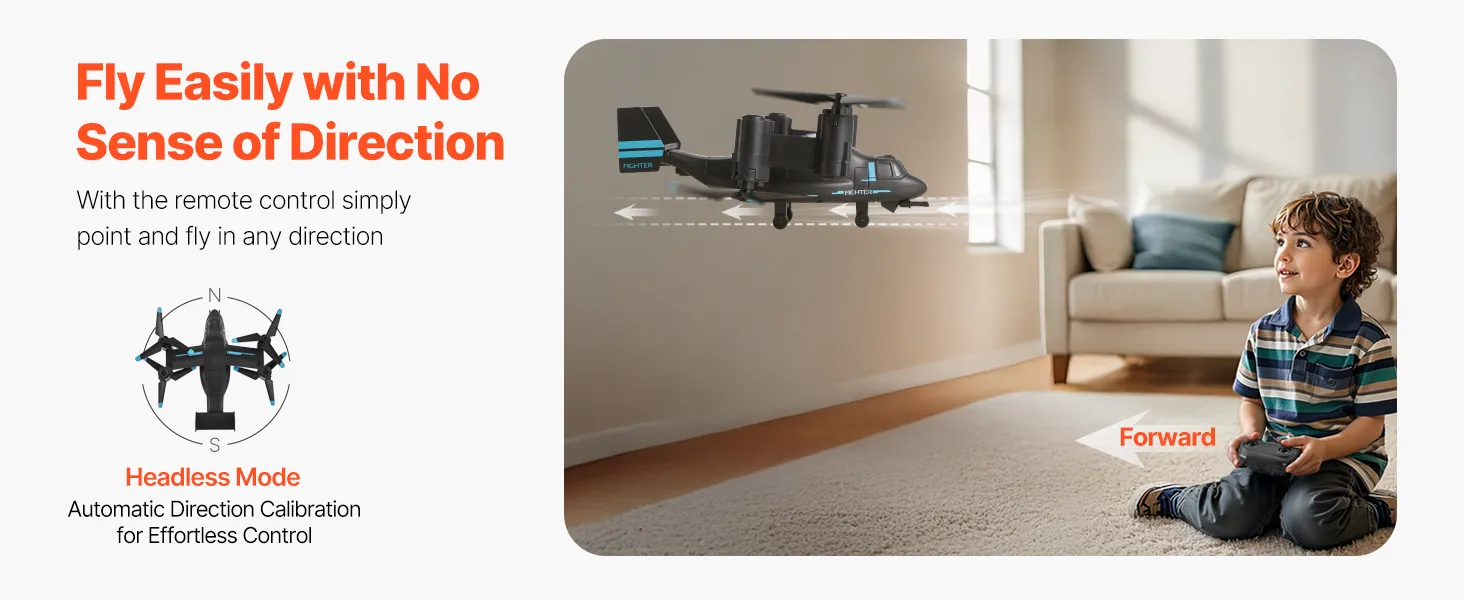 With automatic gyroscope calibration and remote signal redirection, the headless mode allows the helicopter to fly wherever the remote points, making it easy for kids to fly without worrying about orientation.