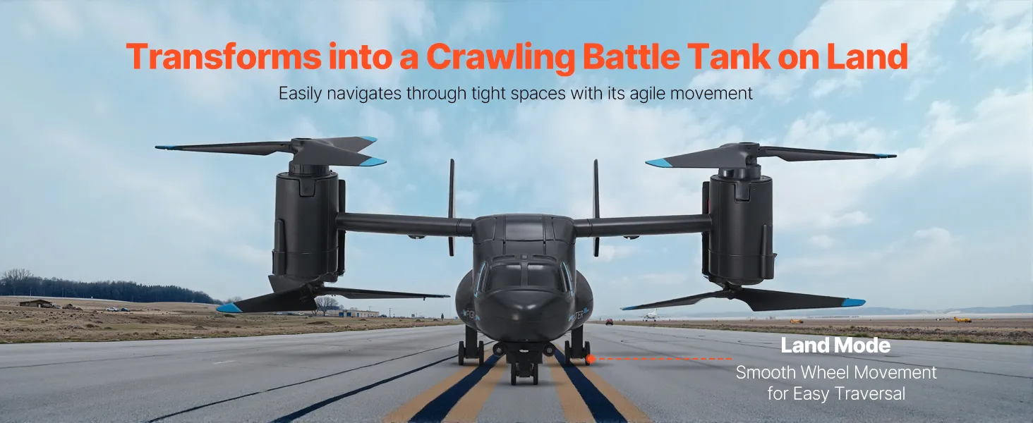 No flying conditions? No problem! Switch to land mode and transform the rc plane into a ground vehicle, allowing smooth play on the ground when flying isn’t possible.
