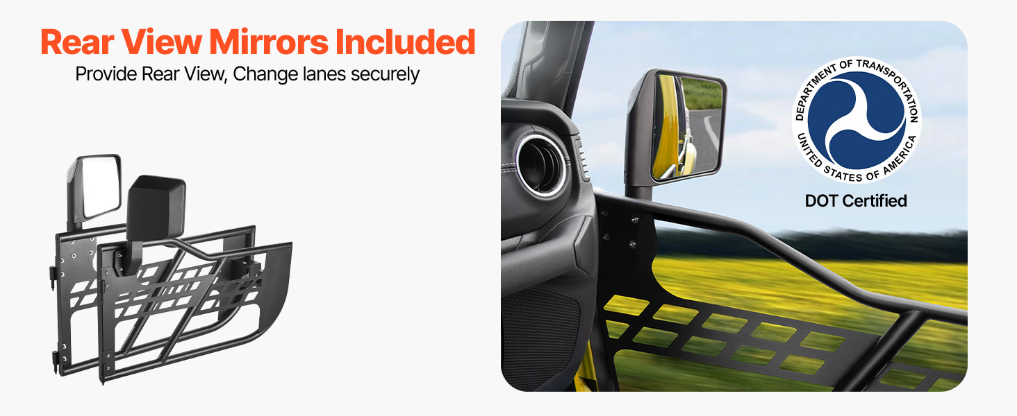 VEVOR Jeep Tube Doors, 4-Door, Hunting Style Jeep Tubular Door with DOT Certified Rear View Mirrors, Jeep Doors with Rubber Pads & Toughened Steel Tube, Fit for 2007-2018 Jeep Wrangler JK
