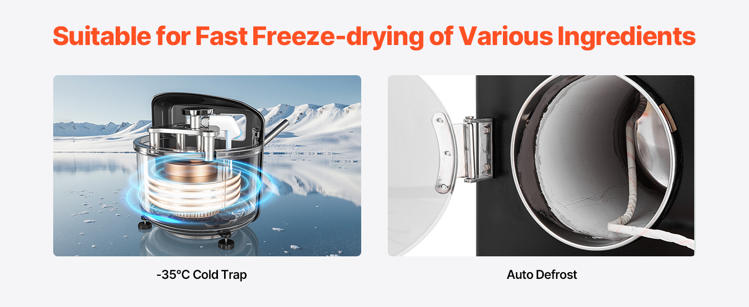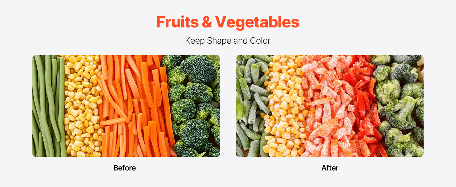 Обладая большой вместимостью 8,8-13,2 фунта (4-6 кг), эта сублимационная сушилка использует технологию вакуумной сублимационной сушки для консервирования продуктов. По сравнению с методами воздушной сушки и обезвоживания, сублимационная сушка сохраняет цвет, аромат, текстуру и питательность продукта в его естественном состоянии.