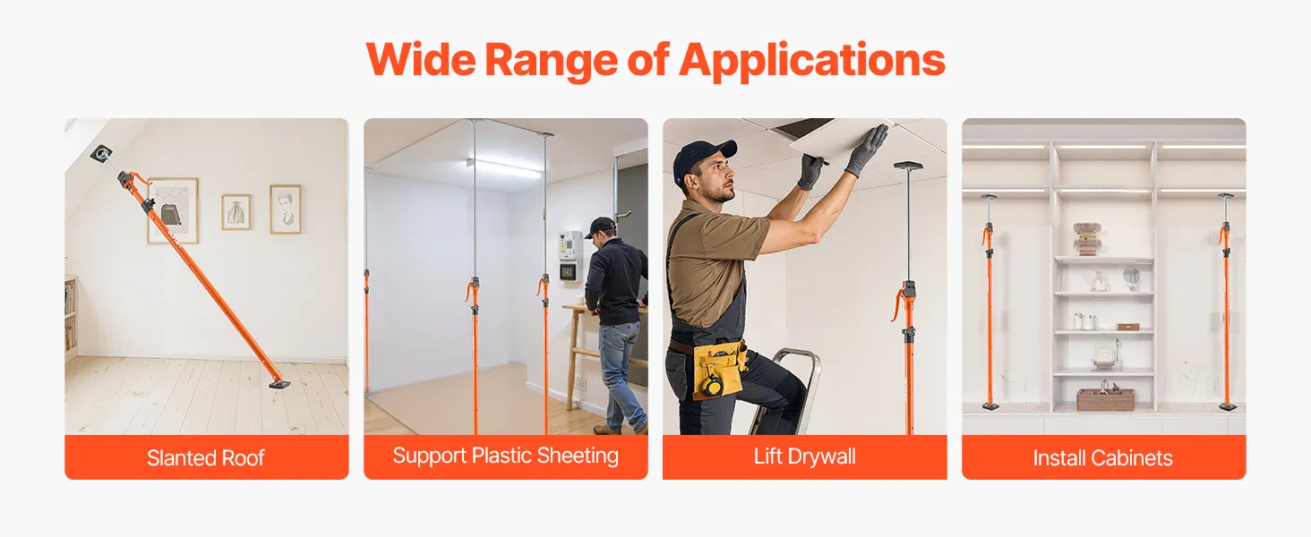 Fit for drywall bracing, plastic sheeting, cabinet installation, and panel holding. Reliable support boosts efficiency in professional construction and home improvement projects.