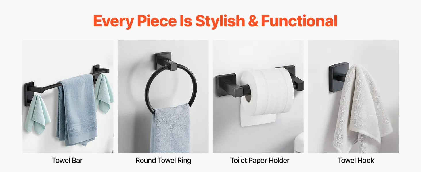 Each accessory is designed for everyday convenience, making towels and items easier to reach while saving space. The unified look adds a stylish touch to your bathroom.