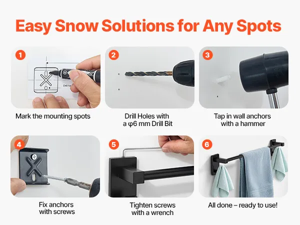 This value-packed bathroom towel holders set helps you easily organize and hang towels and other essentials, keeping your bathroom neat and tidy. Say goodbye to scattered purchases—practical and economical!