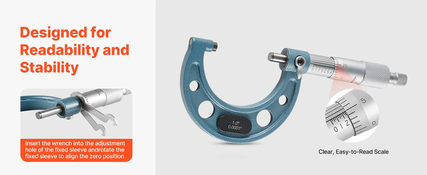 Built with metal, this micrometer set features a blue finish that enhances both appearance and visibility in the workspace, helping you quickly identify the tool, improve efficiency, and extend its service life.