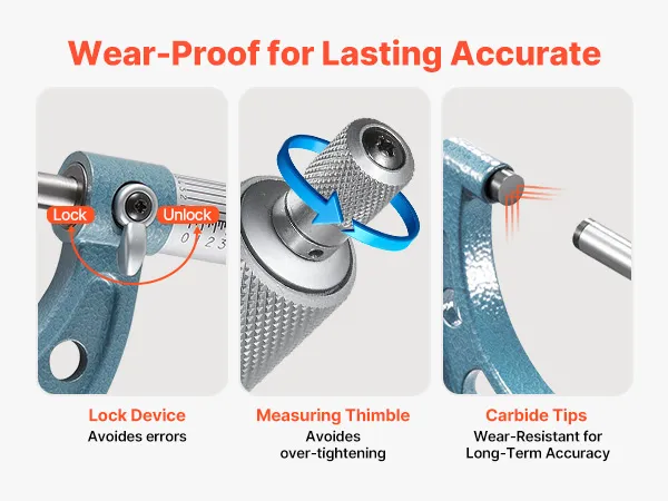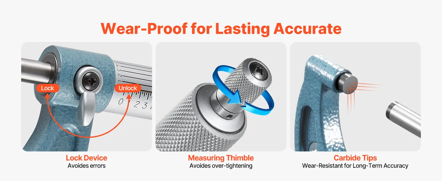 This micrometer set is made of hardened metal for long-lasting use. Its carbide-tipped spindle and locking mechanism apply consistent pressure, ensuring accurate measurements over time and making it a reliable studio companion.